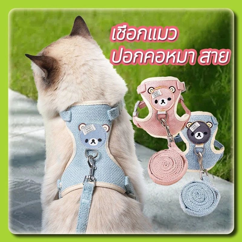 สายจูงแมว สายจูงสุนัขพันธุ์เล็ก พร้อมเสื้อรัดอก กระต่ายก็ใช้ได้ ใส่สบาย ปลอดภัย เดินเล่นได้ทุกวัน