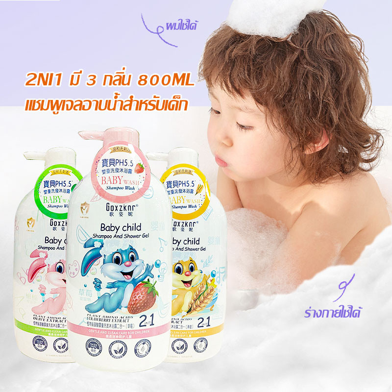แชมพูอาบน้ำสำหรับเด็ก 800ml อ่อนโยน อ าบน้ำและสระผมในขวดเดียว สบู่เหลวเพื่อผิวและผม 2ni1 มี 3 กลิ่น อ่อนโยนต่อผิวลูก-1589