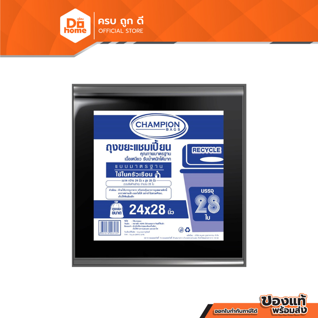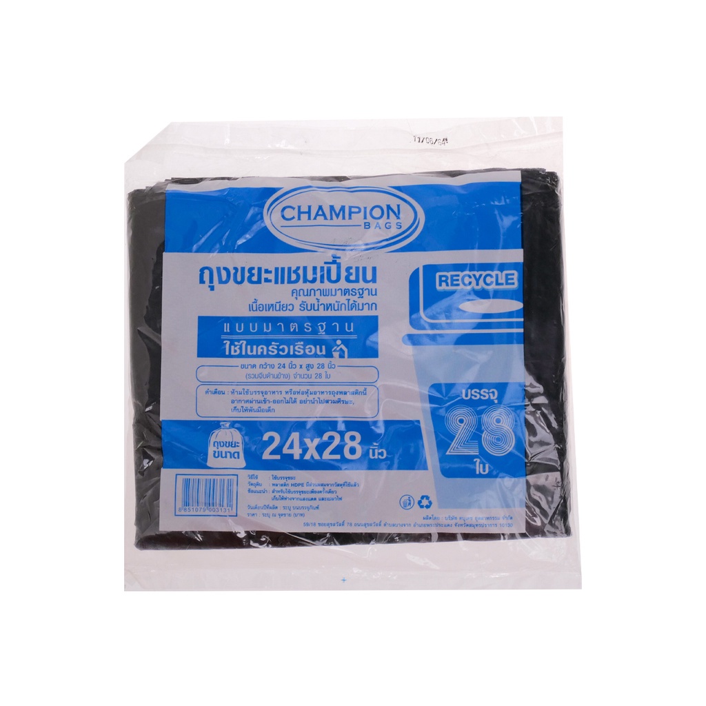 แชมเปี้ยน ถุงขยะมาตรฐาน ขนาด 24x 28 นิ้ว สีดำ (แพ็ค 28 ใบ) |ZWG|