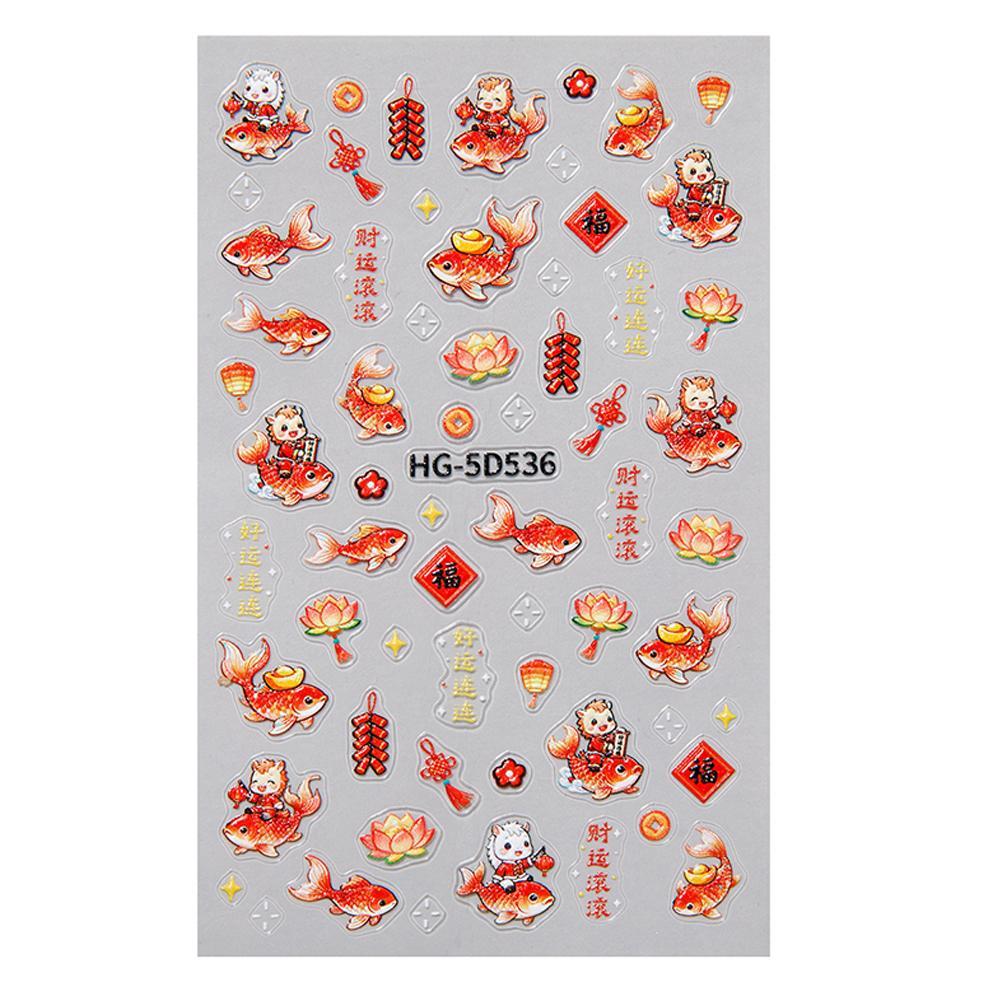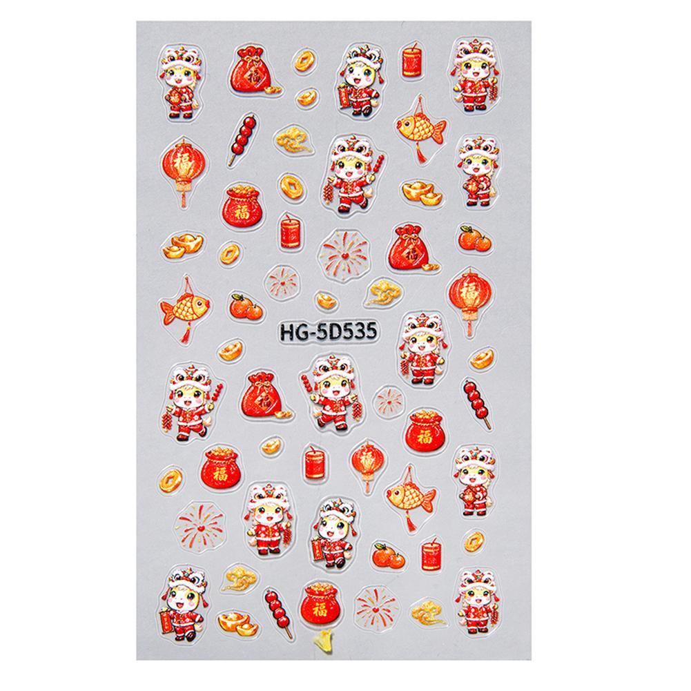 สติ๊กเกอร์ติดเล็บปีใหม่สิงโตเต้นรําสติกเกอร์สวัสดีปีใหม่เล็บปีสติกเกอร์ศิลปะตกแต่ง ม3โอ0