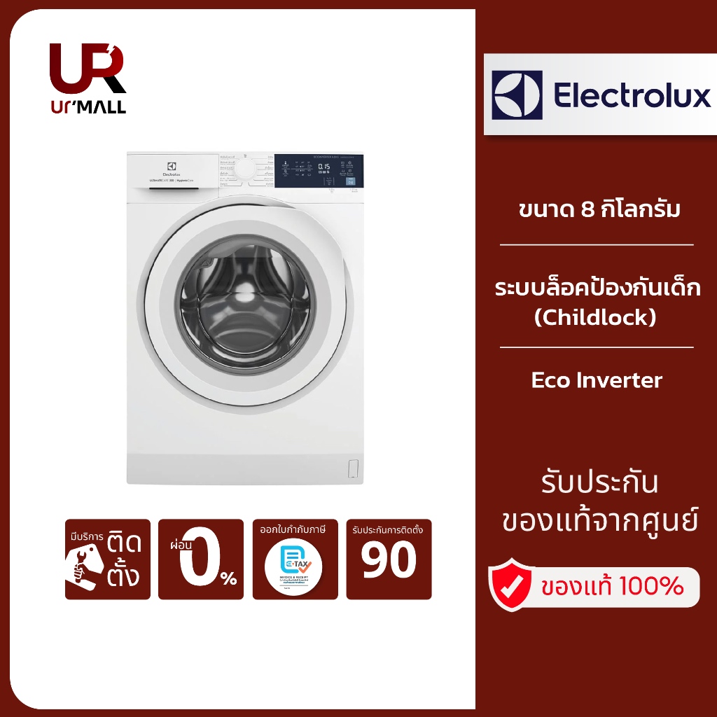 Electrolux เครื่องซักผ้าฝาหน้า ขนาด 8 กิโลกรัม รุ่น EWF8024D3WC สีขาว Eco Inverter