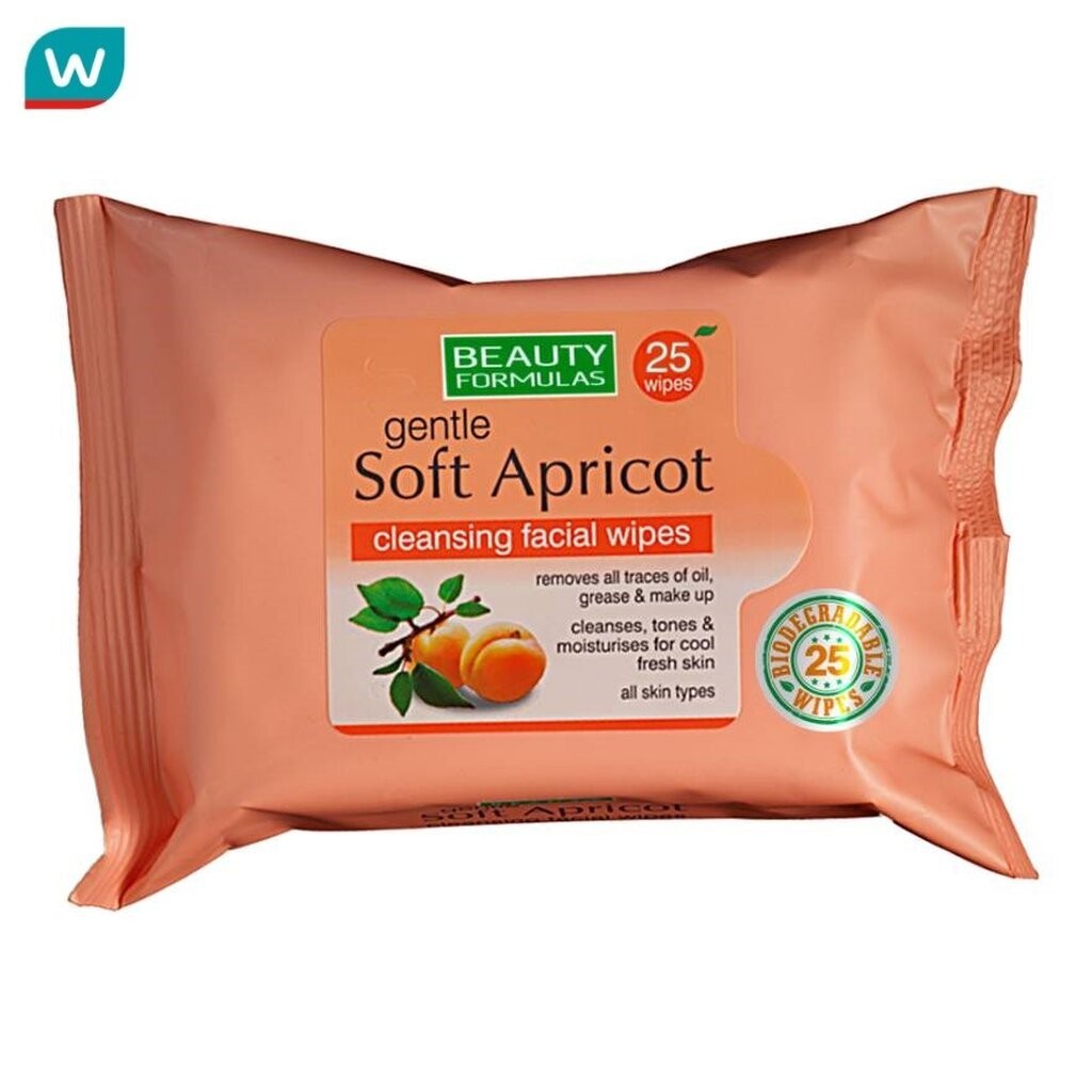 Beauty Formulas บิวตี้ ฟอร์มูล่าส์ เจนเทิล ซอฟท์ แอพพริคอท คลีนซิ่ง เฟเชียล ไวพ์ 25แผ่น.