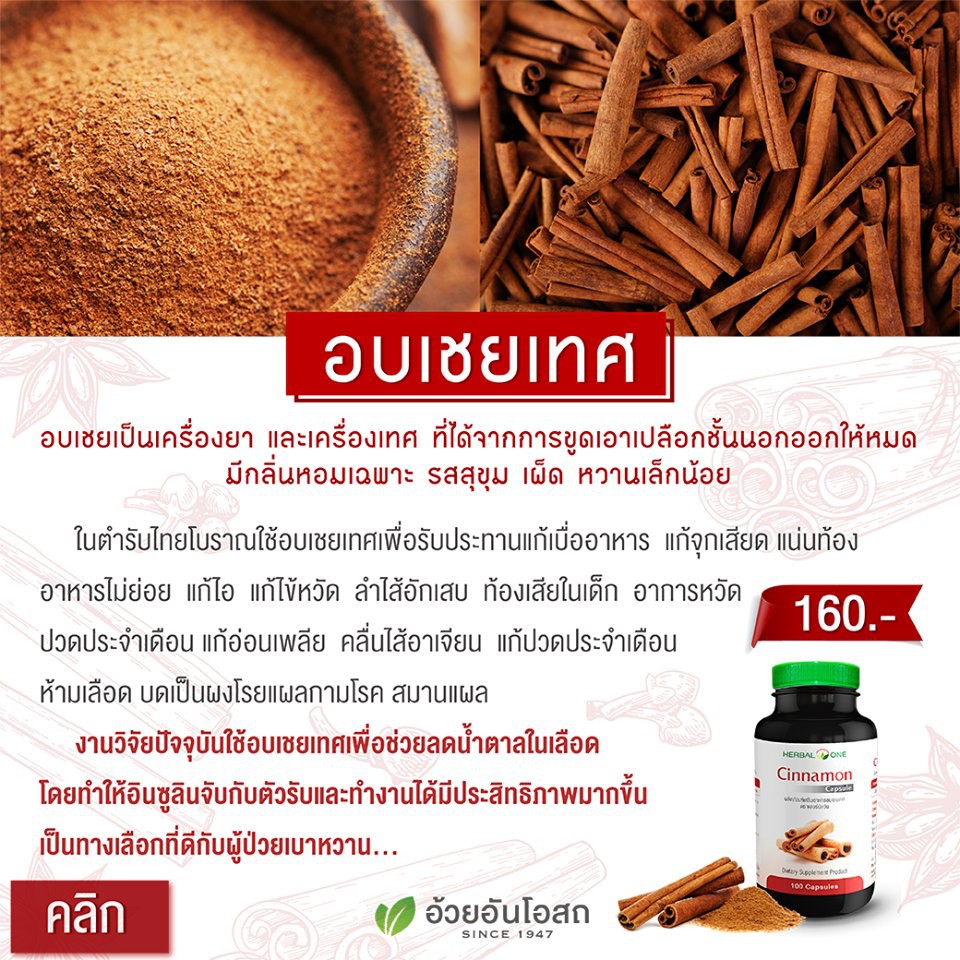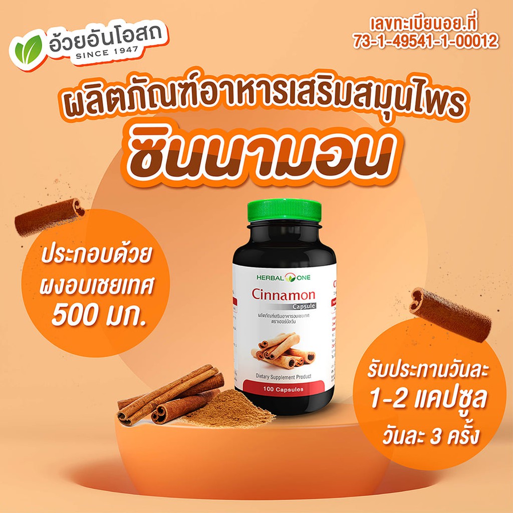 Herbal One Cinnamon 100 เม็ด ซินนามอน อบเชยแคปซูล อ้วยอันโอสถ