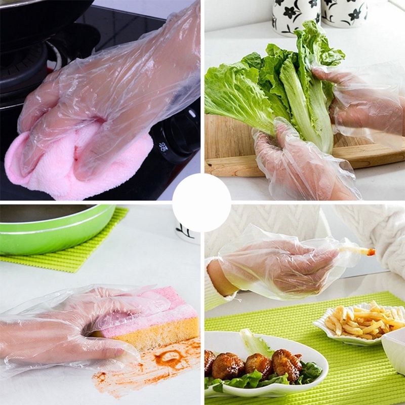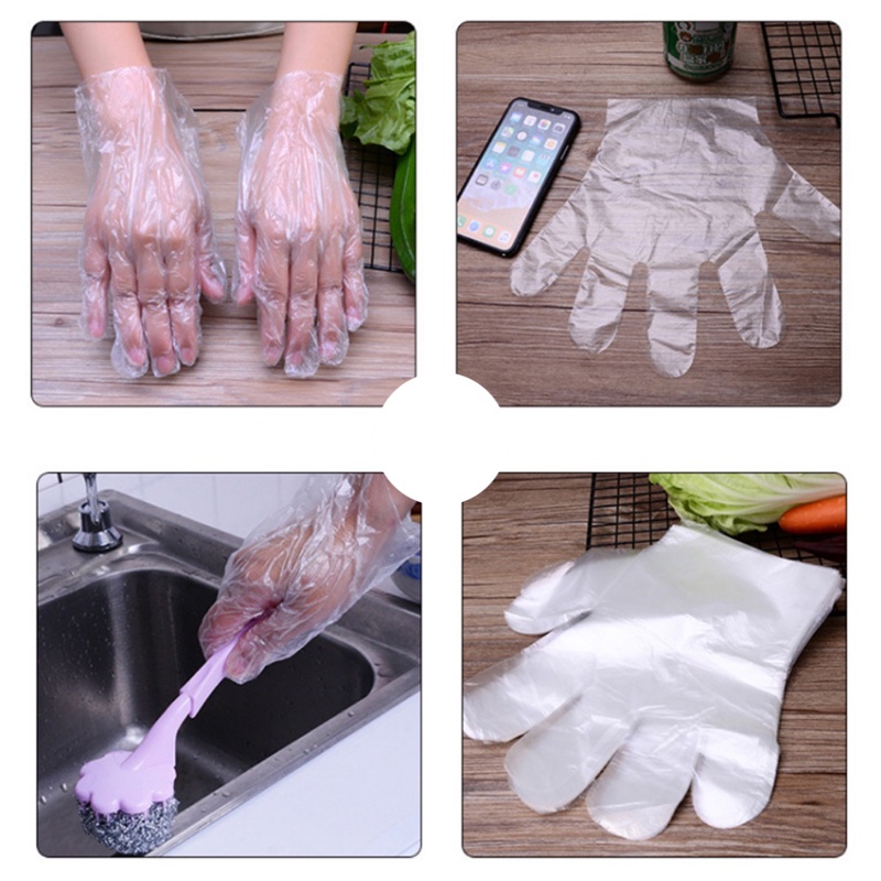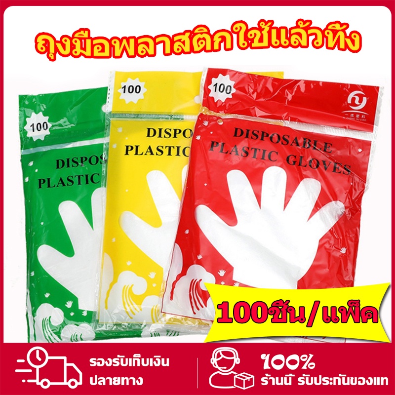 ถุงมือพลาสติกใช้แล้วทิ้ง 100 ชิ้น เอนกประสงค์ ถุงมือทำอาหาร พกพา