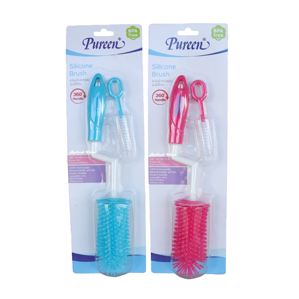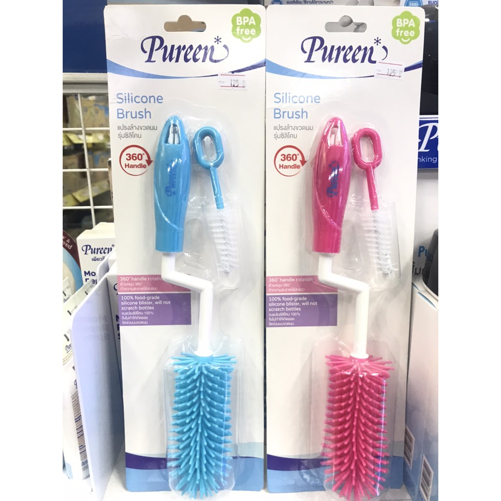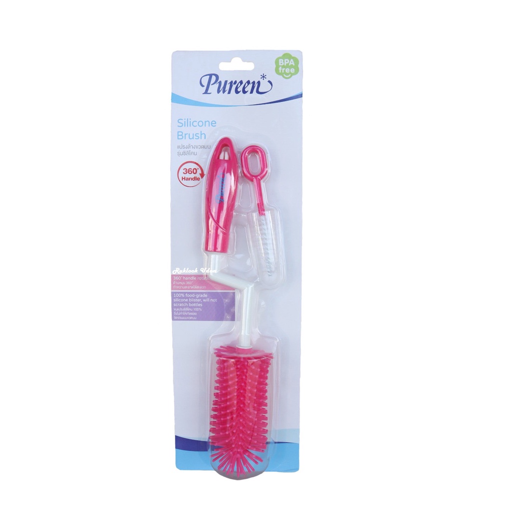 แปรงล้างขวดนม เพียวรีน แปรงล้างขวดนม รุ่นซิลิโคน ด้ามหมุน 360 องศา รหัส1100