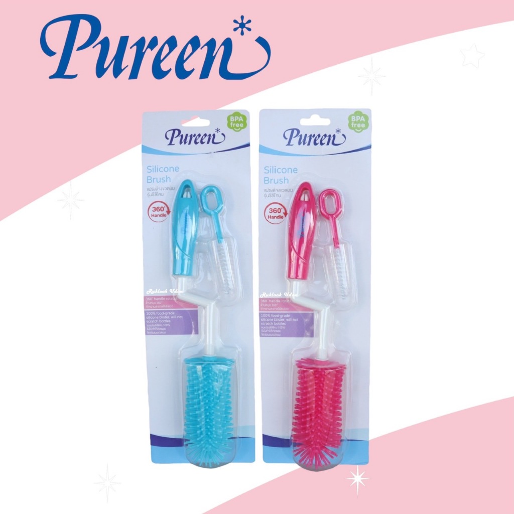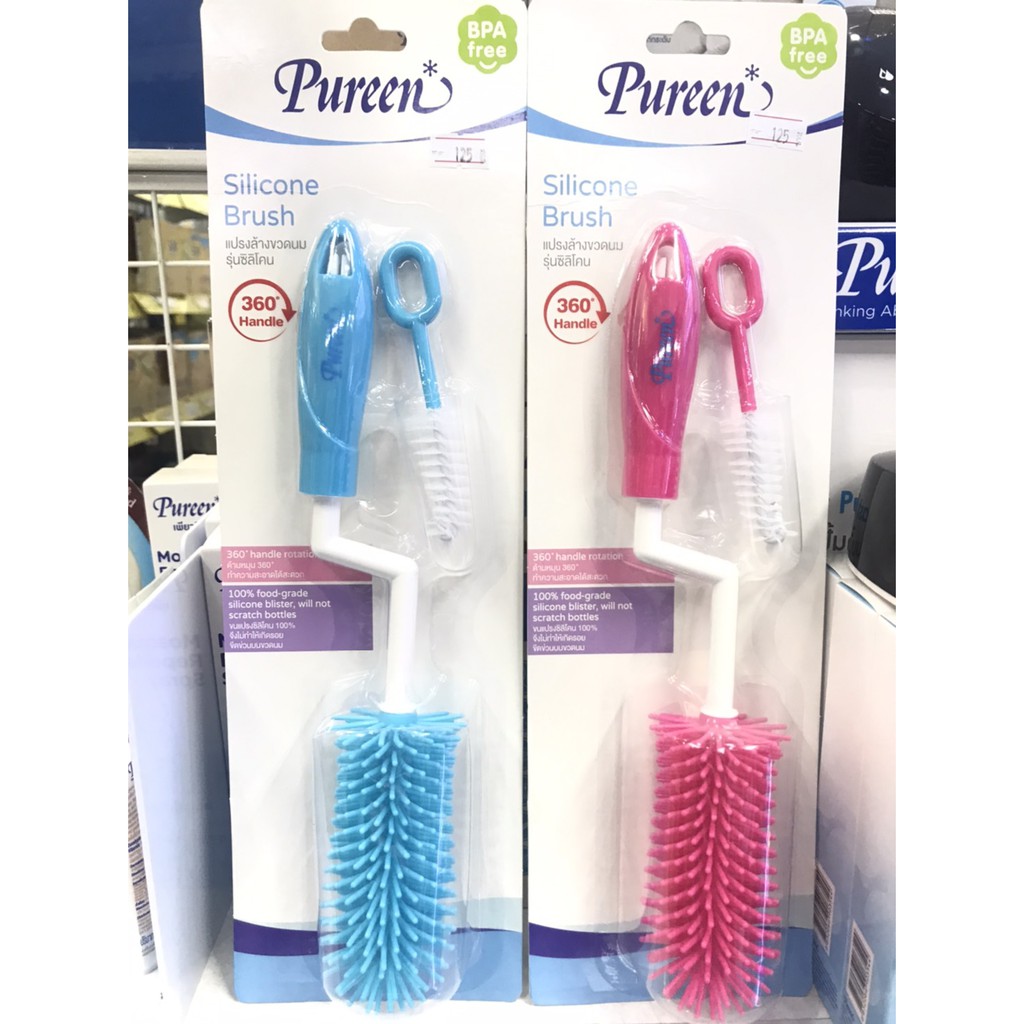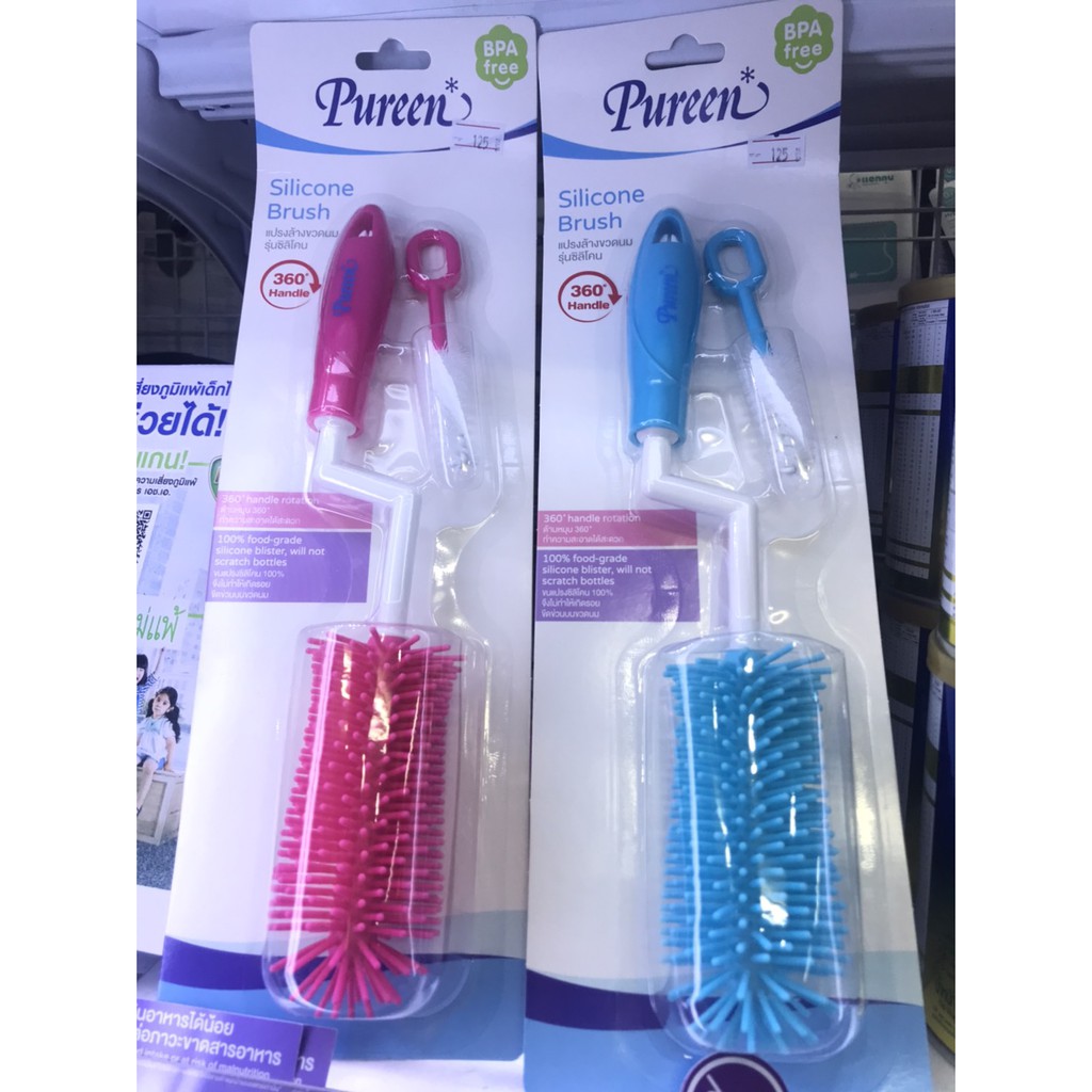 แปรงล้างขวดนม เพียวรีน แปรงล้างขวดนม รุ่นซิลิโคน ด้ามหมุน 360 องศา รหัส1100