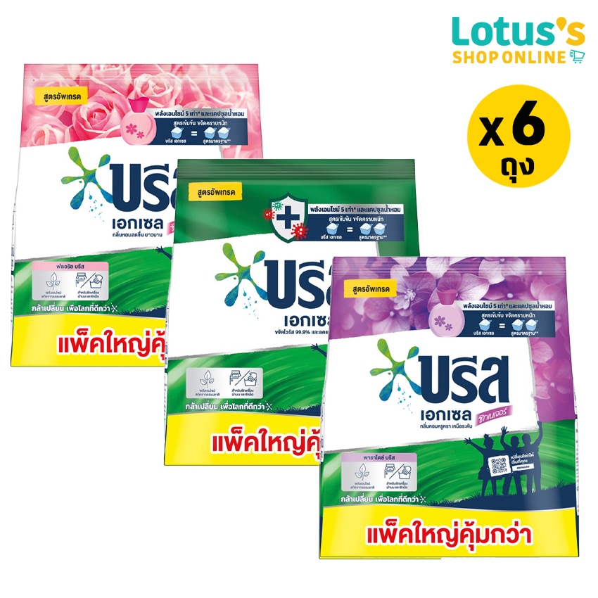 [ทั้งหมด 6 ถุง] บรีส เอกเซล ผงซักฟอก 2400 กรัม BREEZE EXCEL POWDER DETERGENT 2400 G.