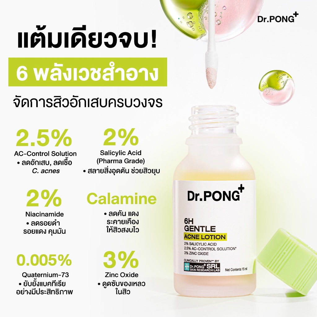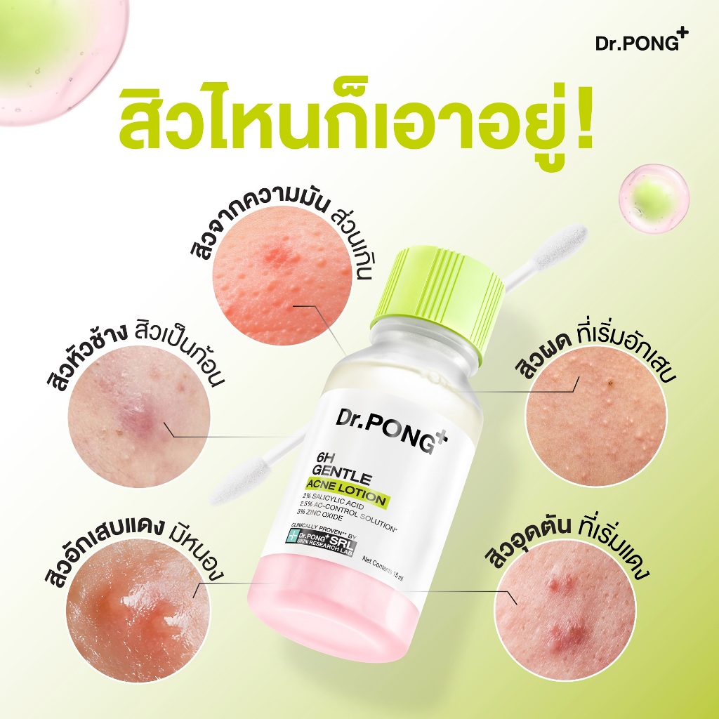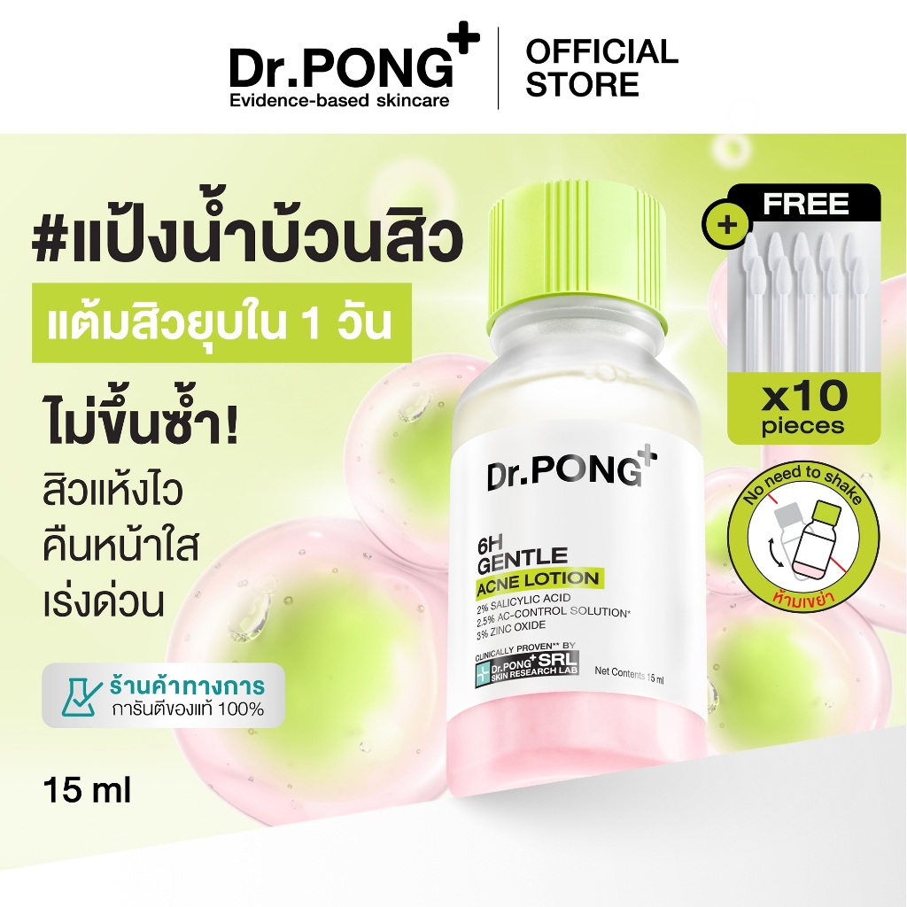 Dr.PONG 6H GENTLE ACNE LOTION แป้งน้ำแต้มสิว สิวยุบใน 1 คืน แห้งไว ไม่ทิ้งรอย ไม่ขึ้นซ้ำ