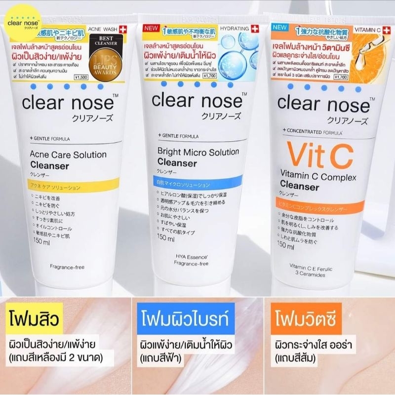 clear nose เจลโฟมล้างหน้าสูตรอ่อนโยน 150ml EXP 2028 แถมฟรี ไวท์บอดี้โลชั่น 35ml💥สินค้าของแท้จาก SHOP
