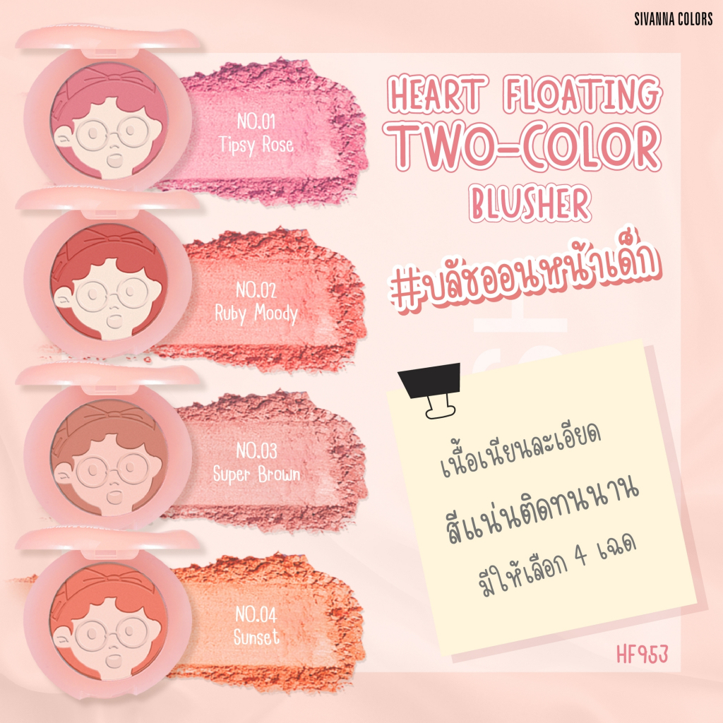 (1 ตลับ) HF953 ซีเวนน่า คัลเลอร์ส ฮาร์ท โฟลทิง บลัชออน ปัดแก้ม Sivanna Heart Floating Two-Color Blusher