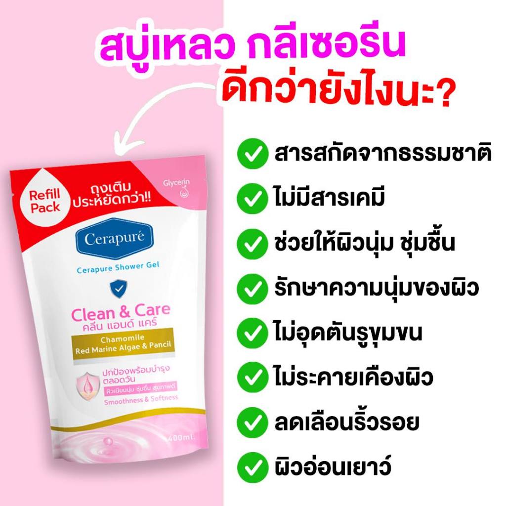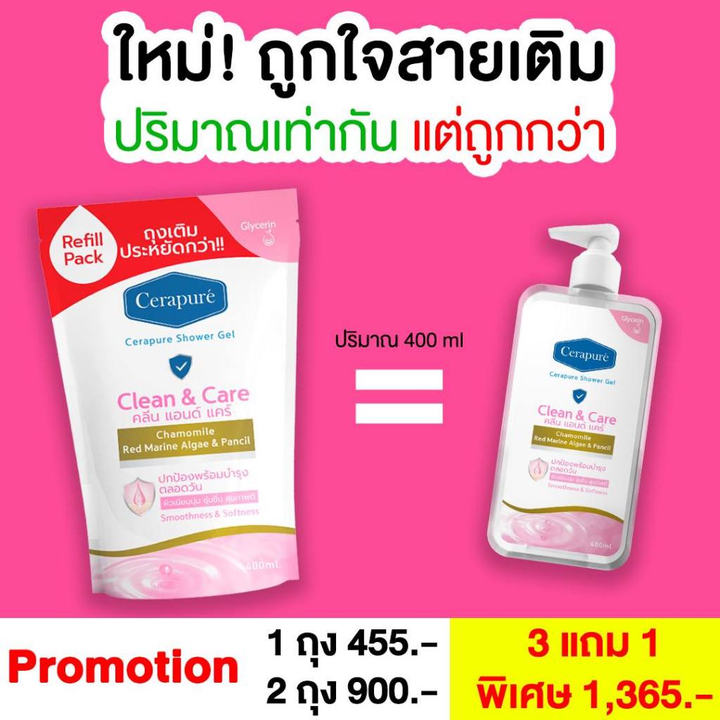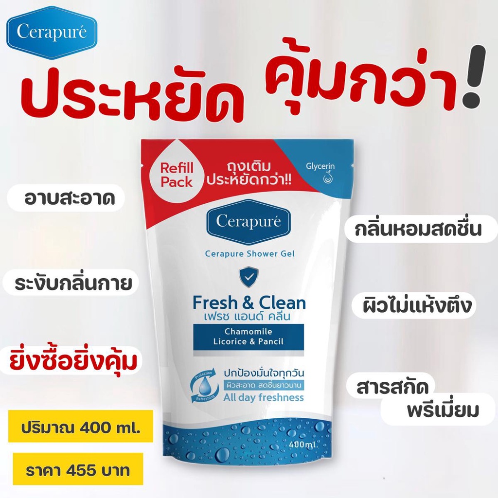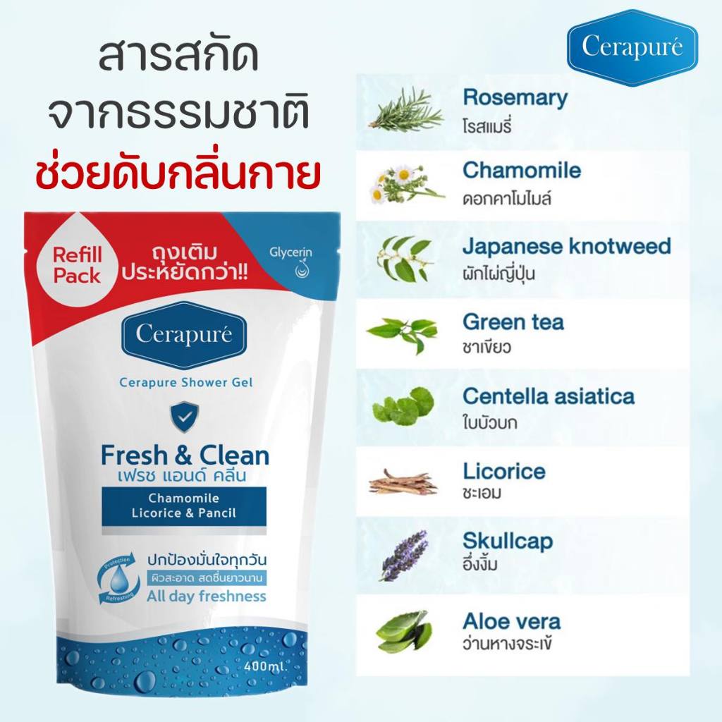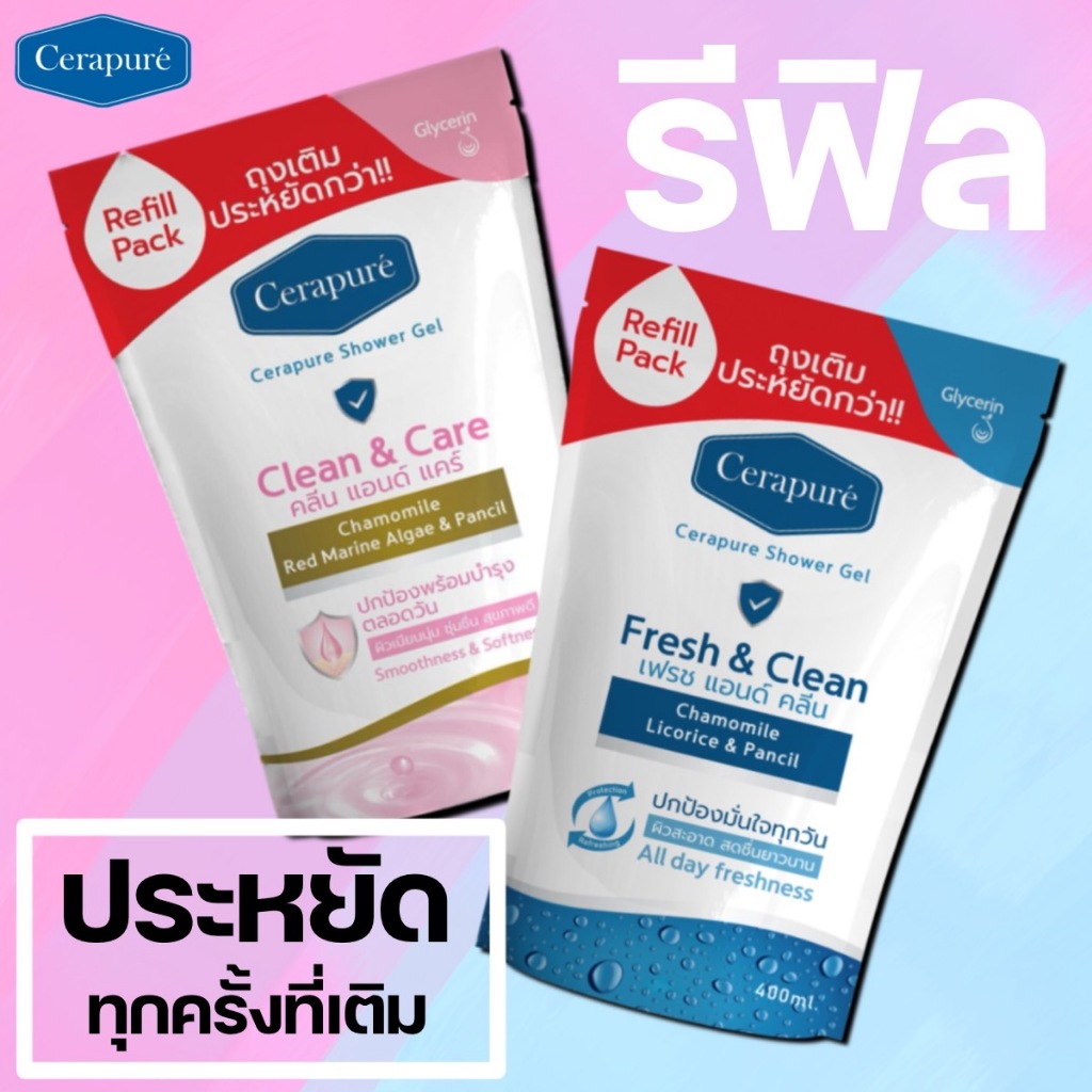 Cerapure เซราพิวเร่ สบู่เหลว (รีฟิล) แบบเติม เจลอาบน้ำ ผิวสะอาด สดชื่นยาวนาน พร้อมส่ง 400 ml