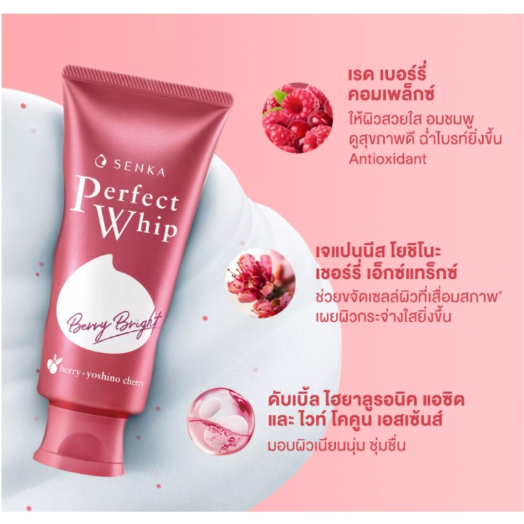 ฉลากไทย!! SHISEIDO Senka Perfect Whip Foam / White Berry Bright เซนกะ เพอร์เฟ็ค วิป โฟม โฟมล้างหน้า 100,150กรัม หลอดใหญ่