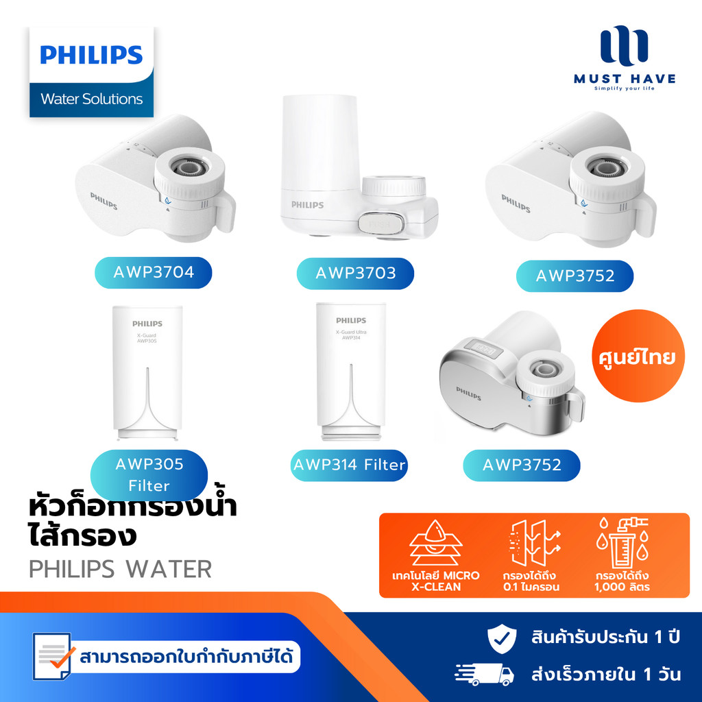 Philips Water AWP3704 / AW3752 / AW3703 Filter tap หัวก๊อกน้ำ เครื่องกรองนํ้า หัวก็อกกรองน้ำ ดีไซน์กะทัดรัด X-Guard
