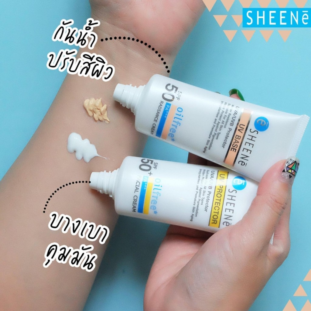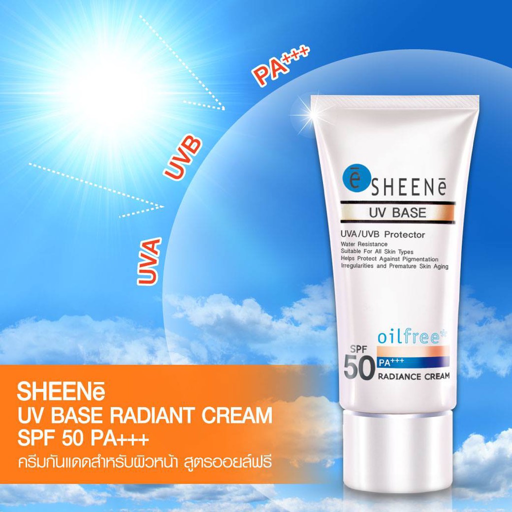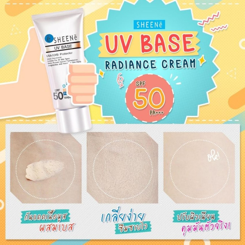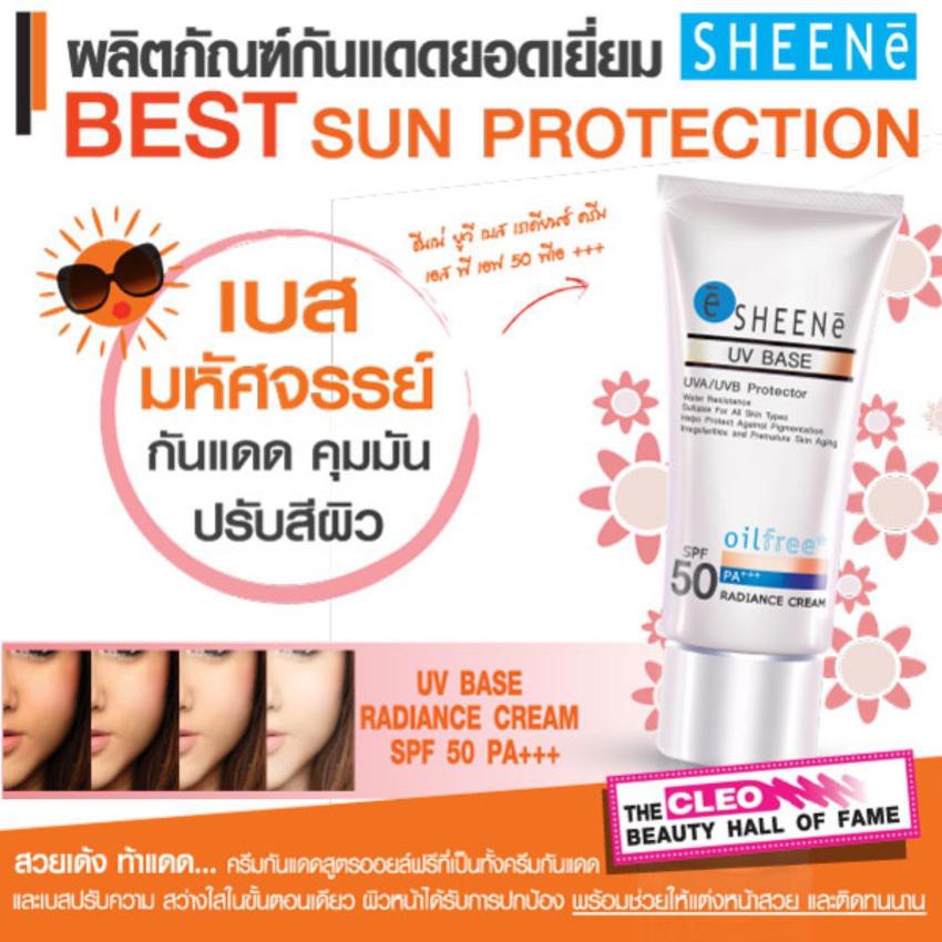 SHEENE UV BASE RADIANCE CREAM SPF 50 PA+++ ครีมกันแดดสำหรับผิวหน้า สูตรออยล์ฟรี