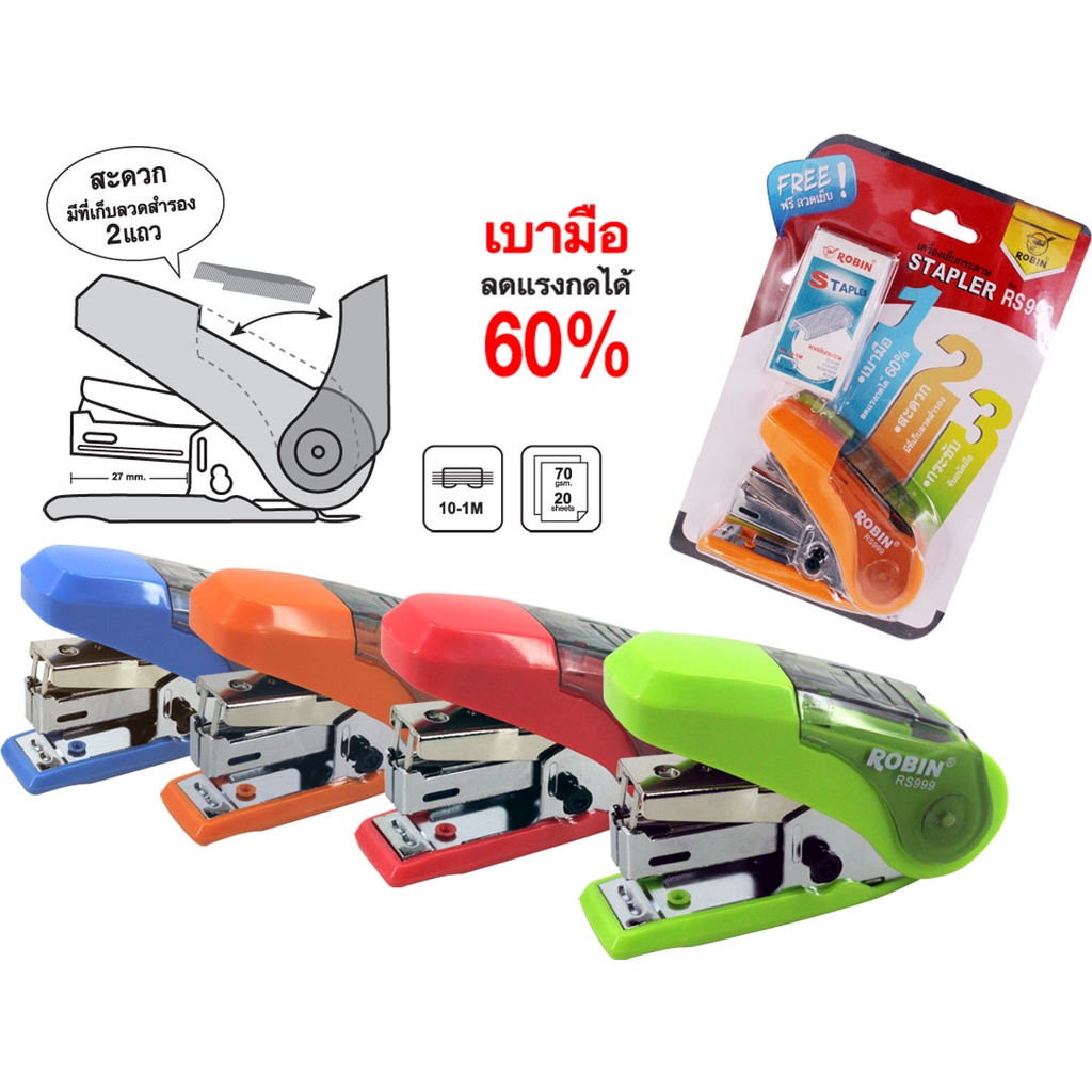Robin เครื่องเย็บกระดาษ แถมลวดเย็บ No.RS999 (เลือกสีได้ ของแถมในแพ็ค)