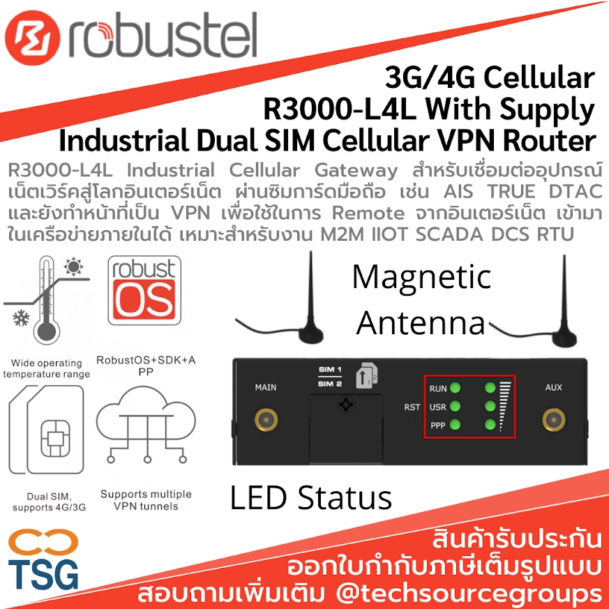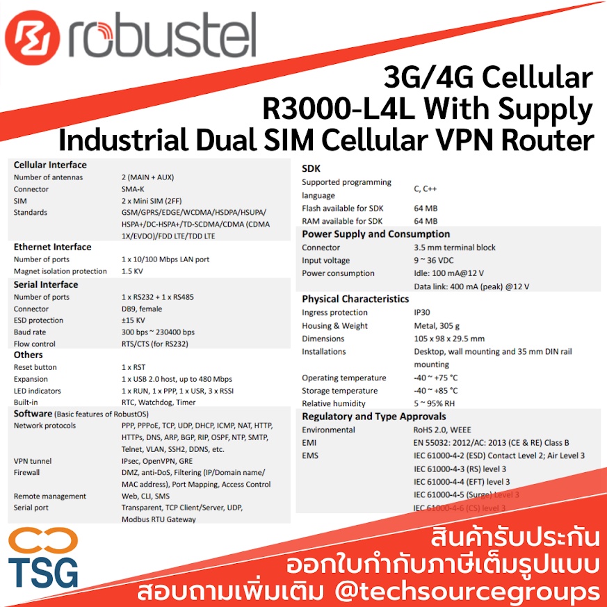 Robustel - R3000-L4L Industrial Dual SIM Cellular VPN Router - Industrial Cellular Gateway - 3G/4G Cellular