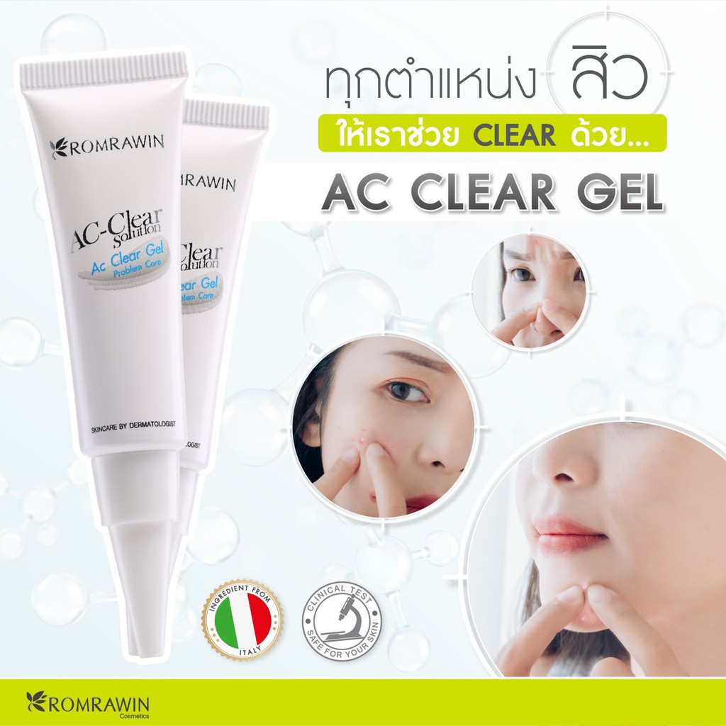 ROMRAWIN AC-CLEAR SOLUTION AC CLEAR GEL 10 ml. เจลแต้มสิวอักเสบ
