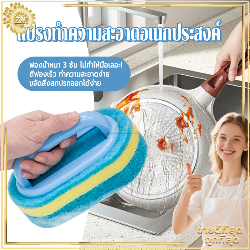 แปรงทำความสะอาดมีด้ามจับ แปรงทำความสะอาดอเนกประสงค์ แปรงครัว แปรงขัดห้องน้ำ อเนกประสงค์ มีด้ามจับกันลื่น สีทูโทน ทนทาน