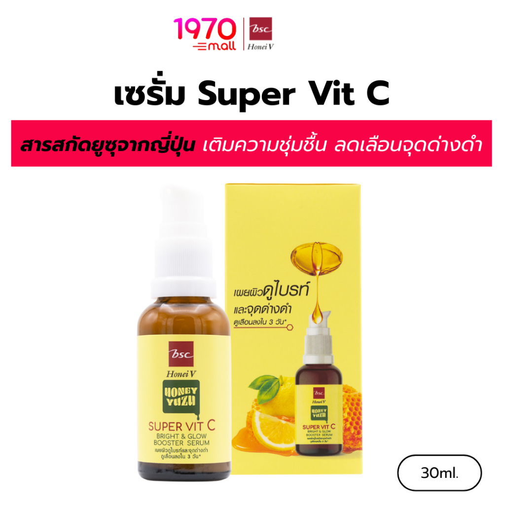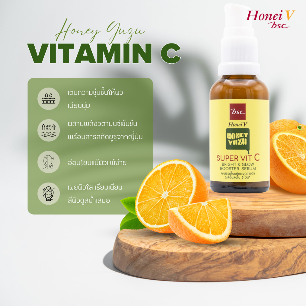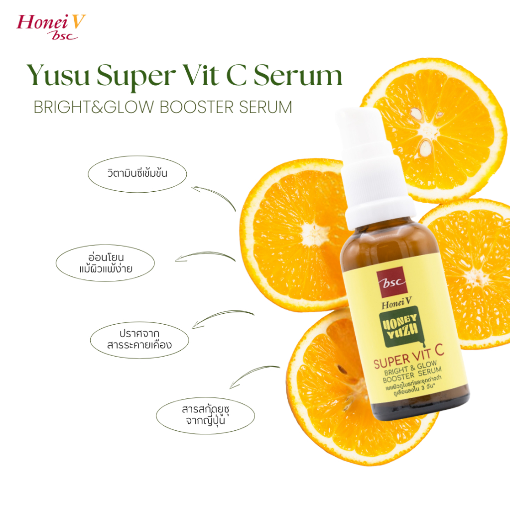 HONEI V BSC HONEY เซรั่ม YUZU SUPER VIT C BRIGHT&GLOW BOOSTER SERUM 30ml. บูสผิว Super Vit C สูตรเข้มข้น ลดจุดด่างดำ