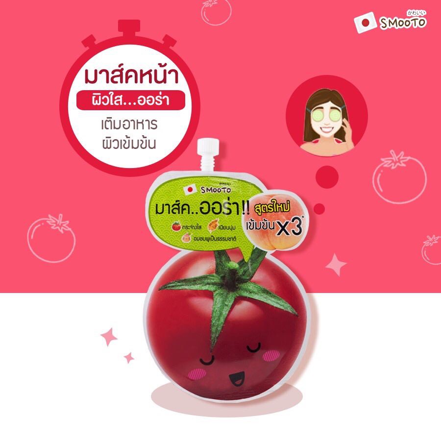 (6ซอง/กล่อง) เข้มข้น X3 สมูทโตะ โทเมโท กลูต้า ออร่า+ สลีปปิ้ง มาส์ค Smooto Tomato มะเขือเทศ [0375]