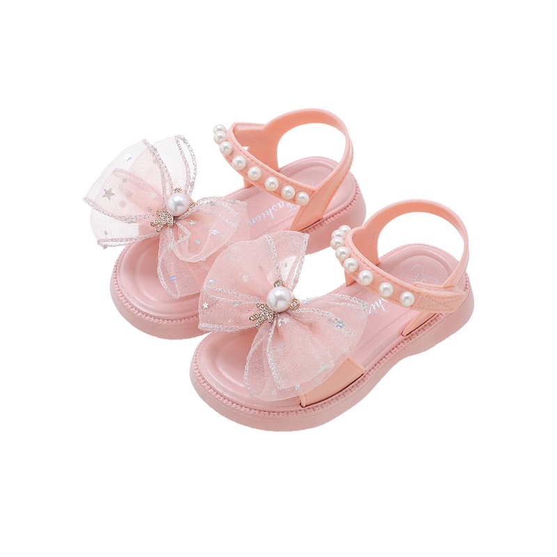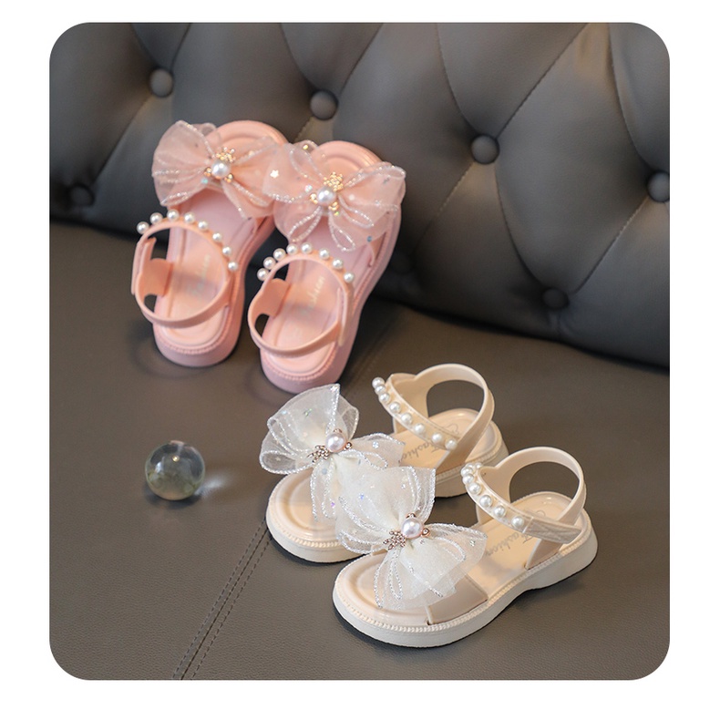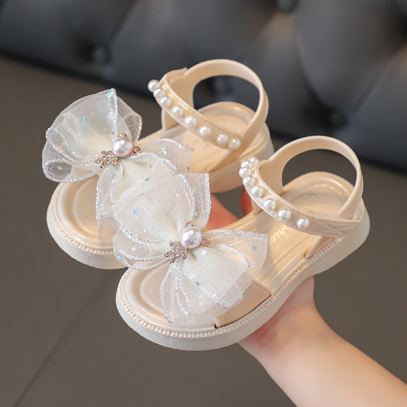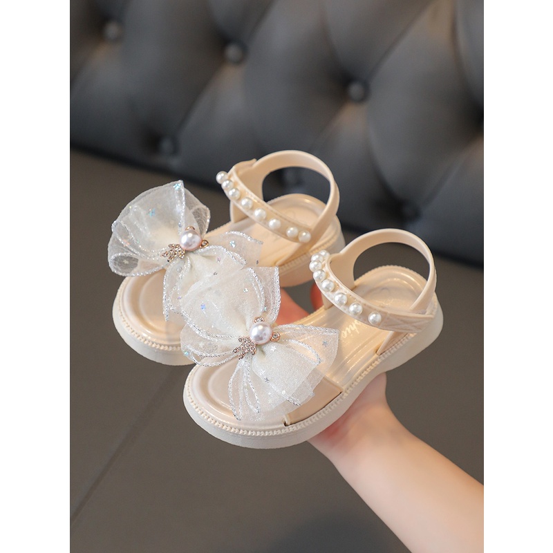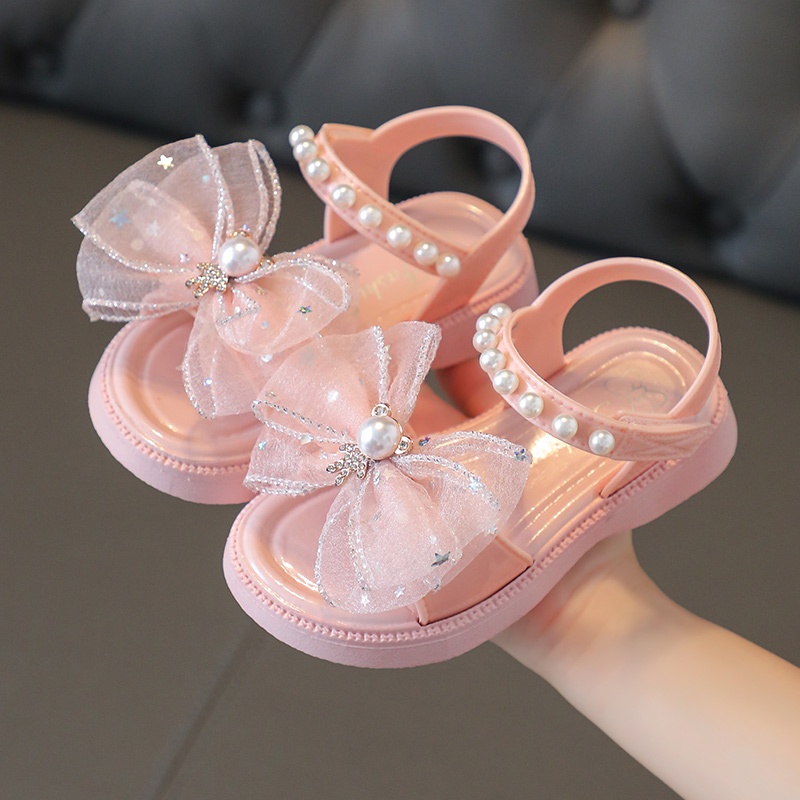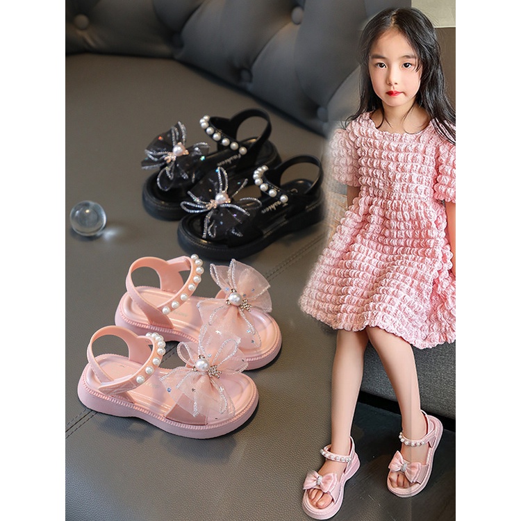 รองเท้าแตะ เปิดนิ้วเท้า ผ้าตาข่าย ประดับโบว์ แฟชั่นฤดูร้อน สไตล์เจ้าหญิง สําหรับเด็กผู้หญิง