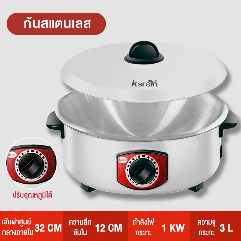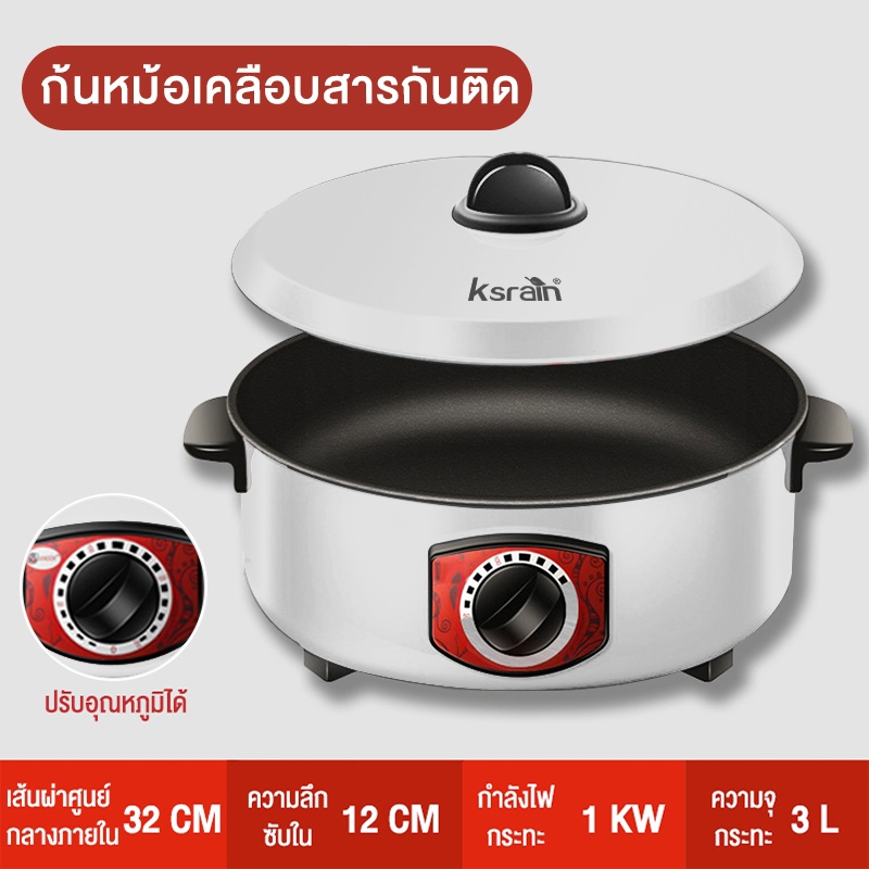 หม้อไฟฟ้า กระ ทะไฟฟ้า กระทะไฟฟ้าเคลือบสารกันติดอเนกประสงค์ 32 น หม้อทอดและปรุงอาหารไฟฟ้าสำหรับ2-8คน กระทะไฟฟ้าในครัวเรือน