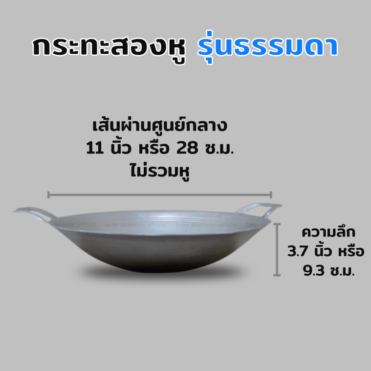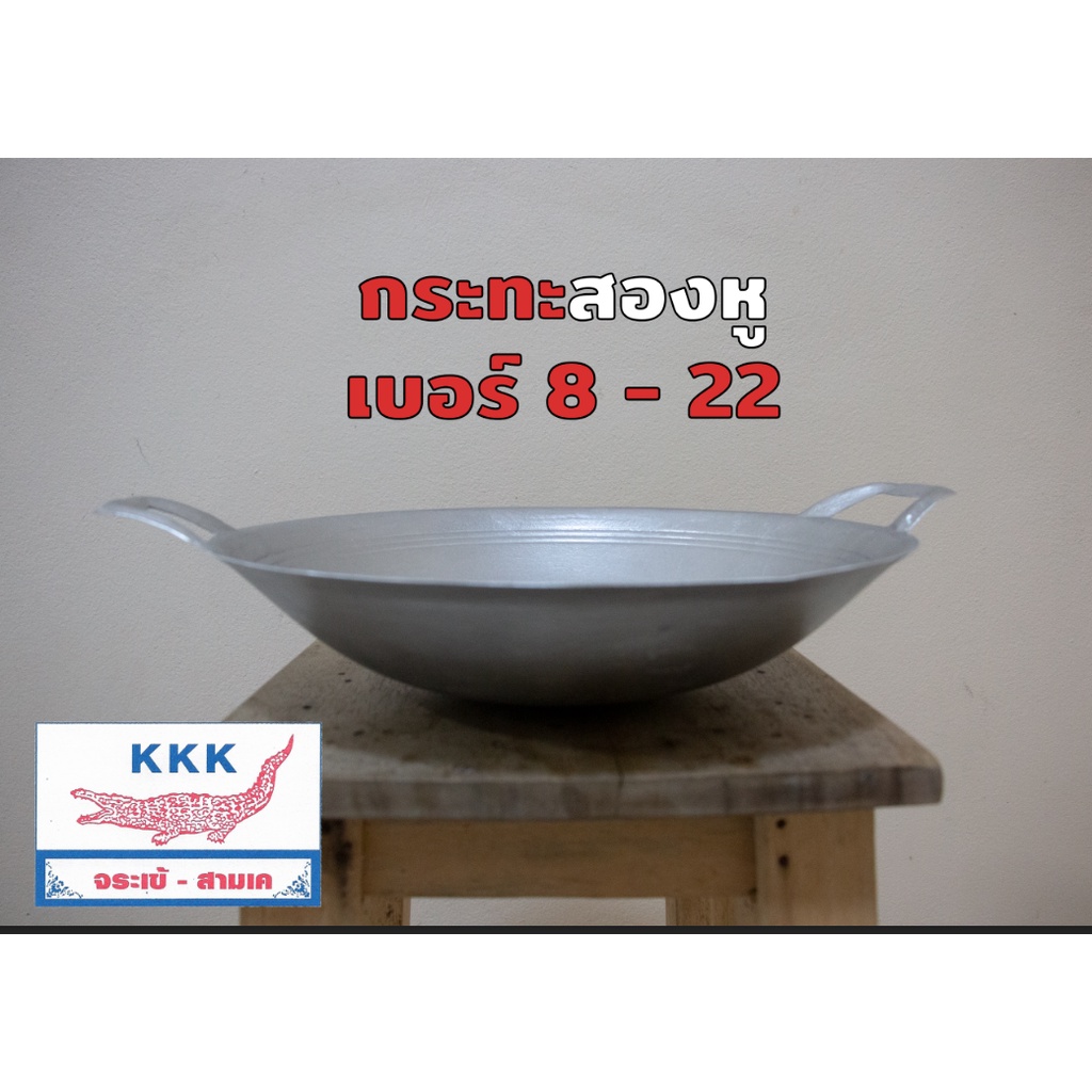 กระทะอลูมิเนียม สองหู ธรรมดา ตราจระเข้ 3K ขนาด 8 - 22 นิ้ว