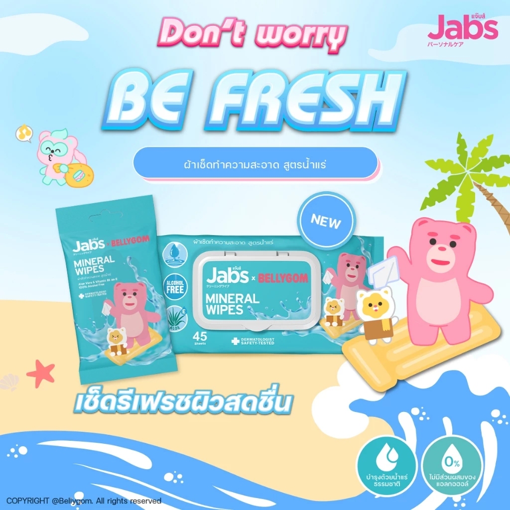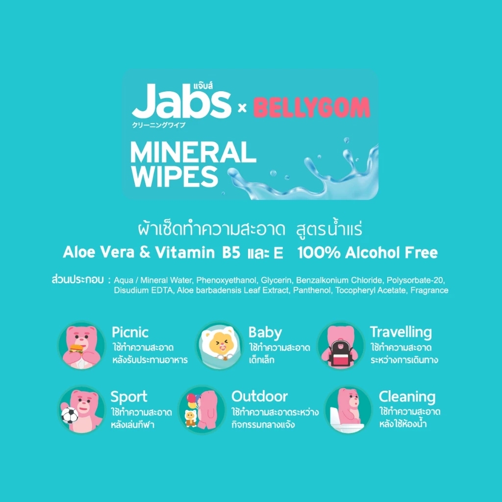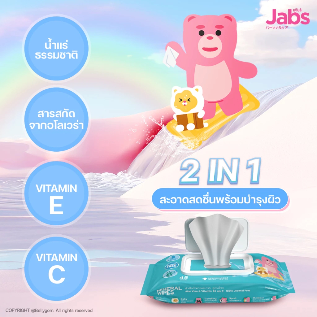 (1แถม1) แจ๊บส์ ทิชชู่เปียก ผ้าเช็ดทำความสะอาดผิว สูตรน้ำแร่/ อ่อนโยน Jabs Mineral / Baby Wet Wipes