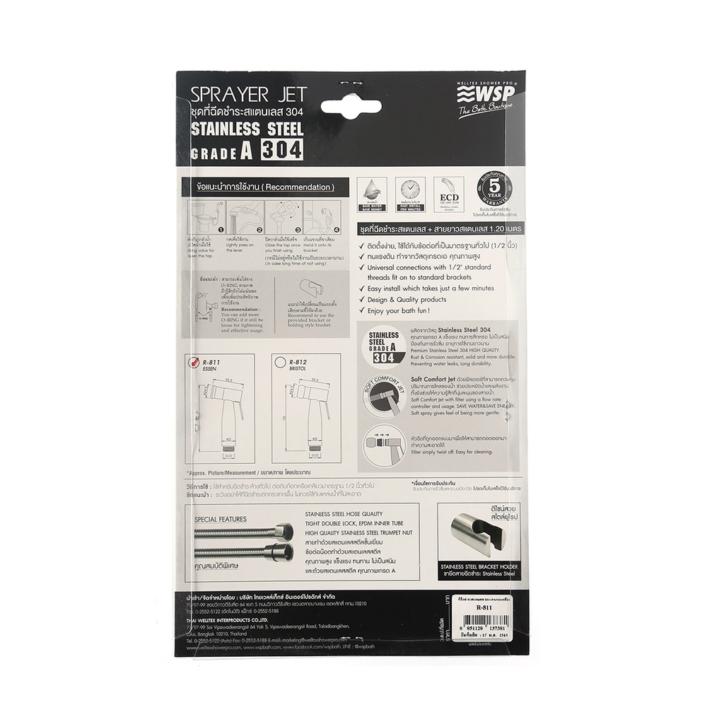 WSP สายฉีดชำระ แกนทองเหลือง รุ่น R-811 สแตนเลส |ZWF|