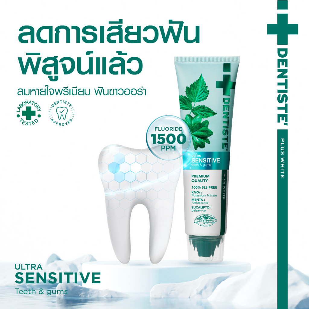 Dentiste' Ultra Sensitive100g. 67059 ยาสีฟันสูตรใหม่ ลดอาการเสียวฟันอย่างอ่อนโยนในทันทีที่ใช้ 1500PPM ลมหายใจหอมสดชื่น