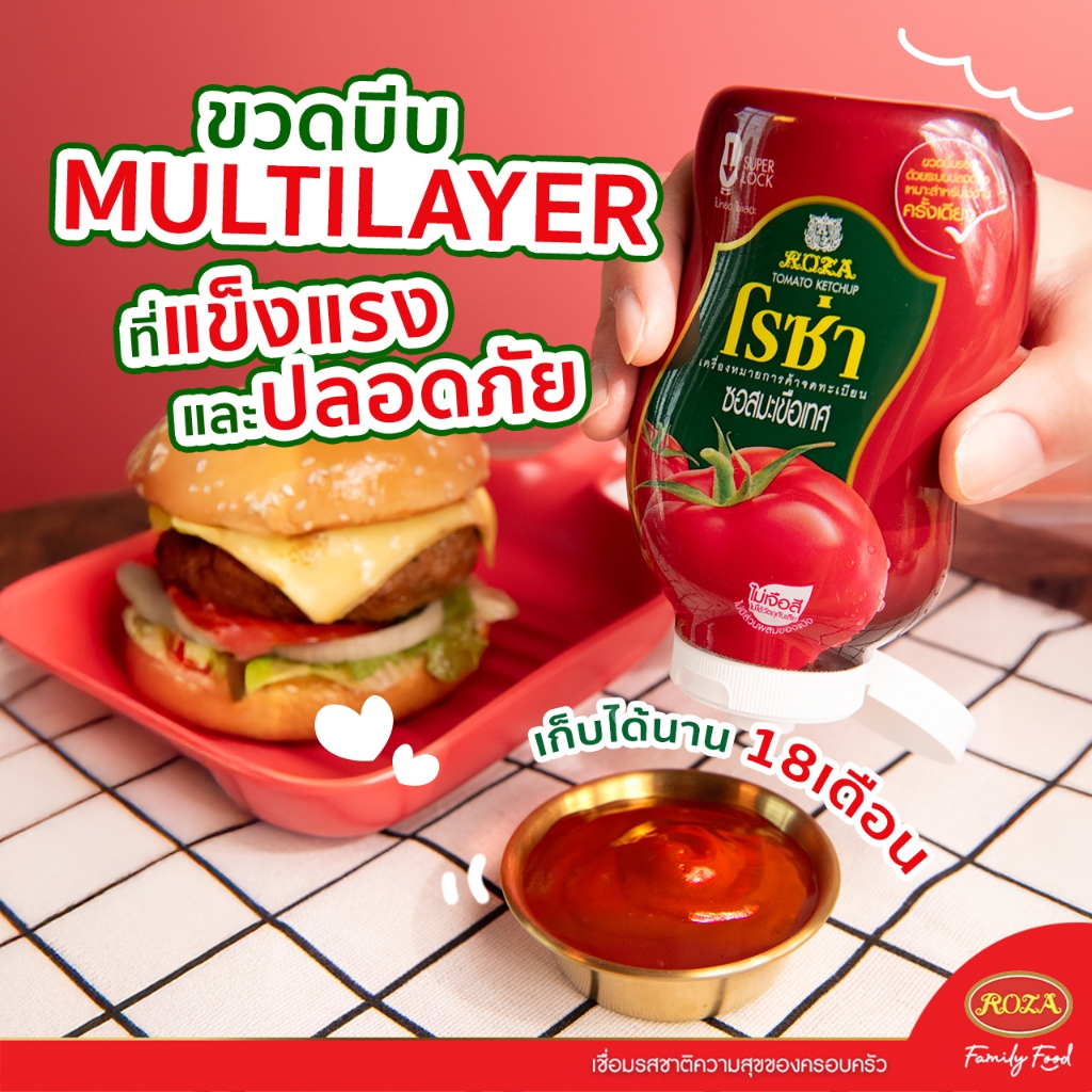 Roza โรซ่า ซอสพริกและซอสมะเขือเทศ ขวดบีบ 250 กรัม