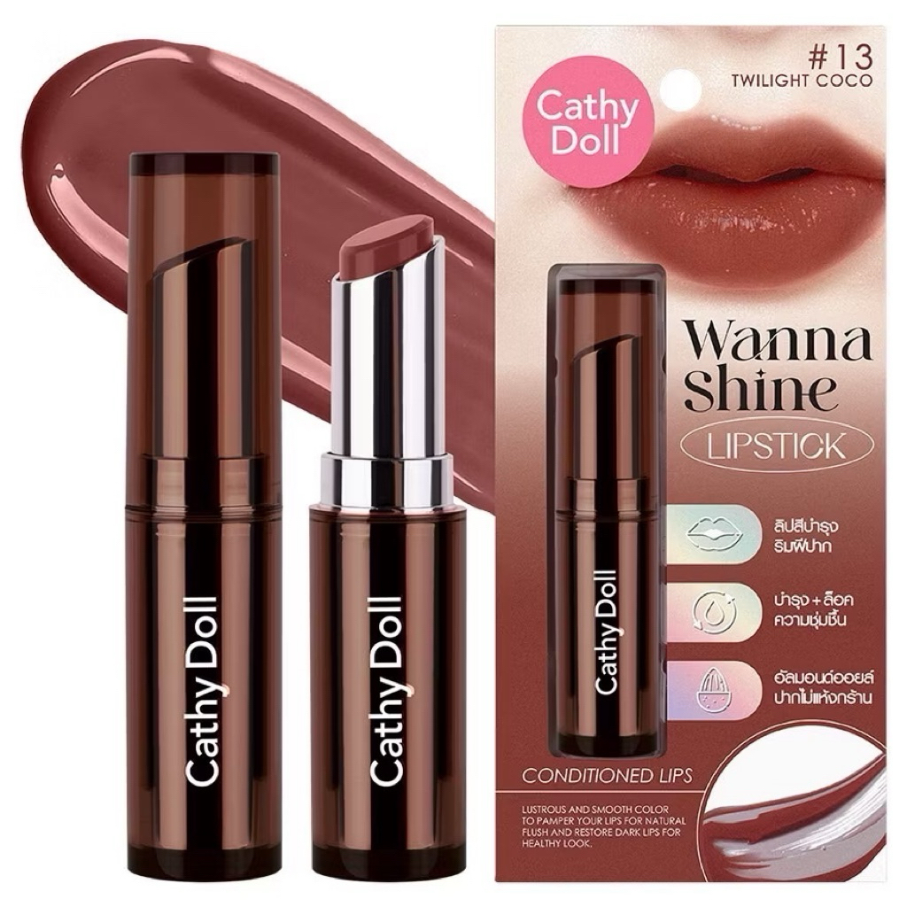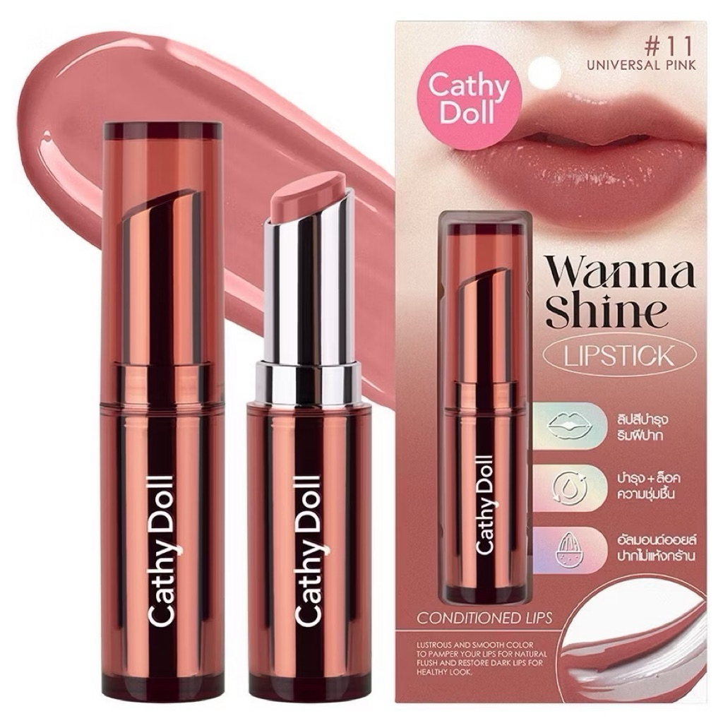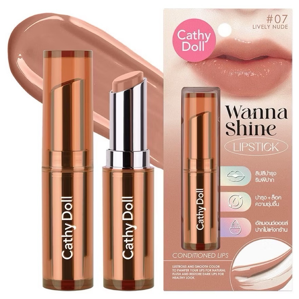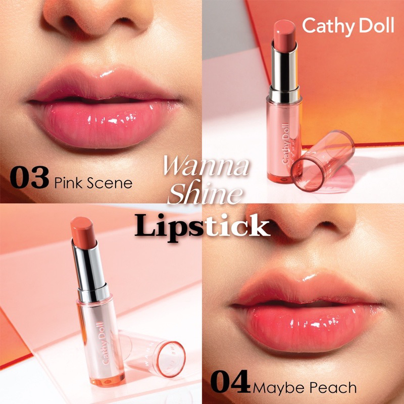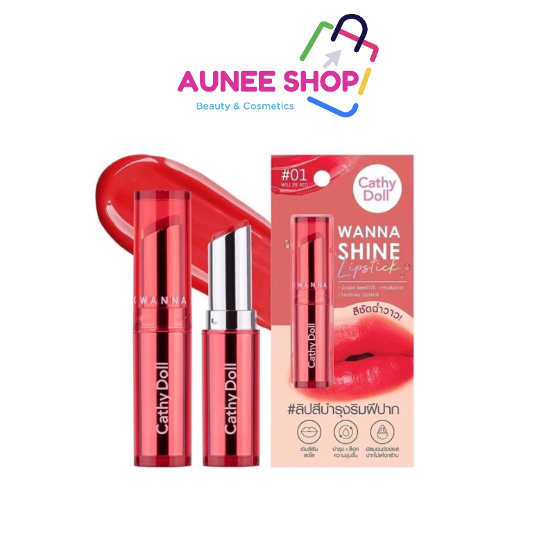 ส่งฟรี/มีไลฟ์ เคที่ดอลล์ ลิปวันนาไชน์ ลิปสติก ลิปบำรุงปากมีสี 3g Cathy Doll Wanna Shine Lipstick