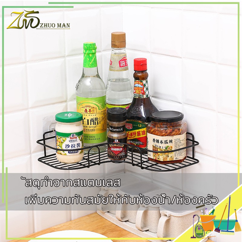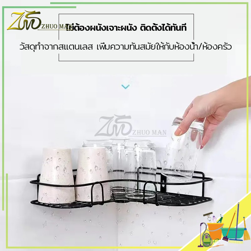 ชั้นวางของในห้องน้ำ ชั้นวางของติดผนัง ที่วางของเข้ามุมสามเเหลียม ติดผนัง ไม่ต้องเจาะรู ชั้นวางของในห้องครัว 💕พร้อมส่ง💕