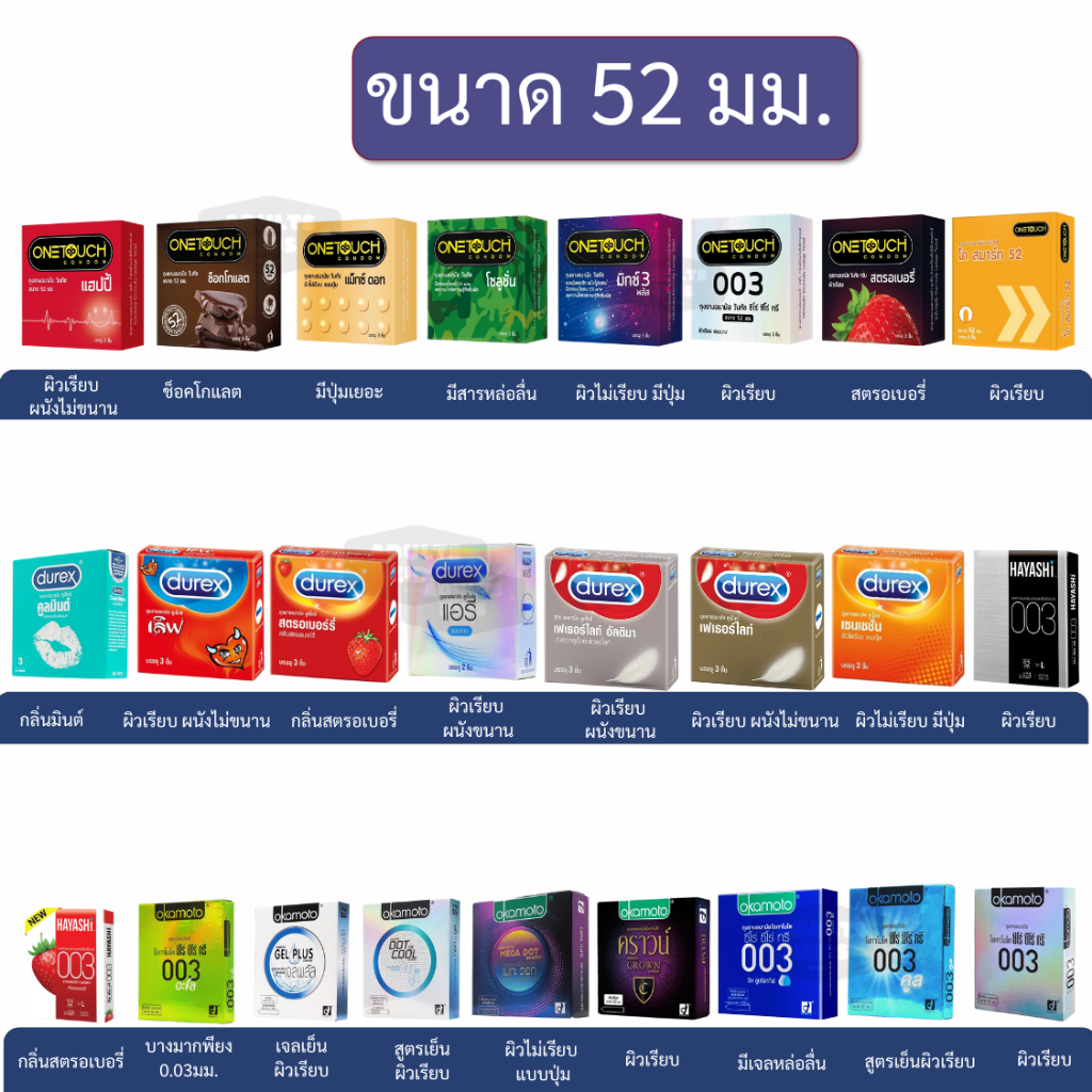 ถุงยางอนามัย onetouch durex Hayashi Okamoto ขนาด 52 มม. เลือกสินค้าด้านใน