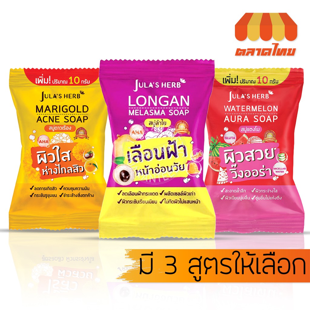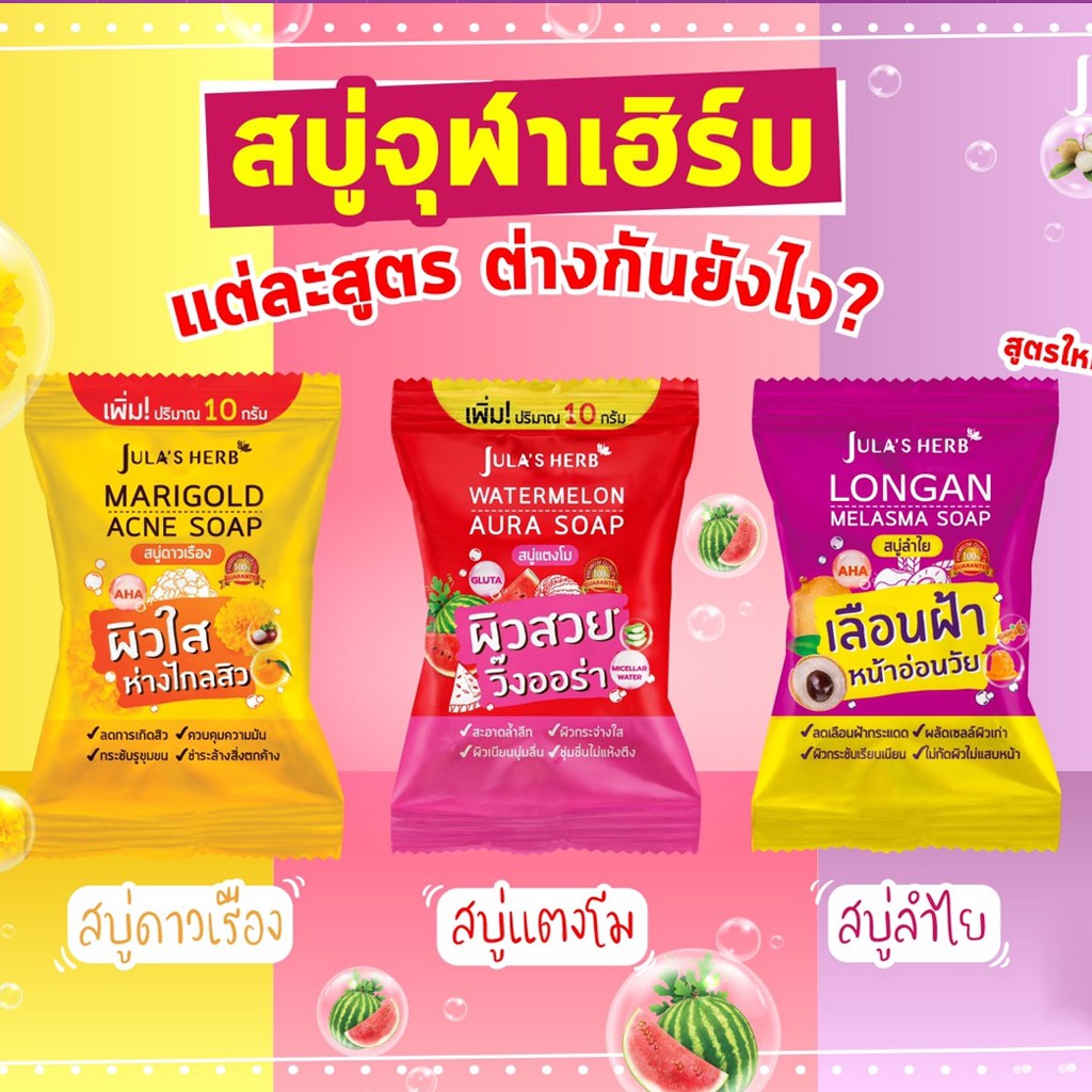 จุฬาเฮิร์บ สบู่แตงโม/ดาวเรือง/ลำไย 70 กรัม JULA’s HERB Watermelon/Mariglod/longan 70 g.