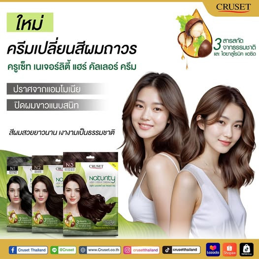ครีมเปลี่ยนสีผม ครูเซ็ท เนเจอร์ลิตี้แฮร์คัลเลอร์ครีม ปราศจากแอมโมเนีย ไร้กลิ่นฉุน ไม่ทำร้ายเส้นผม