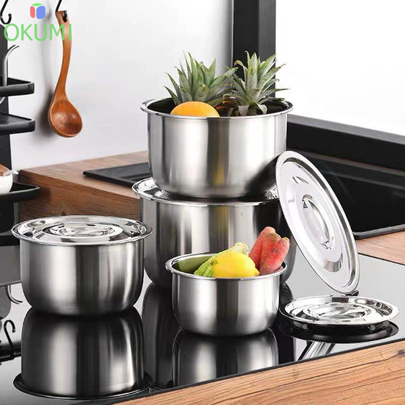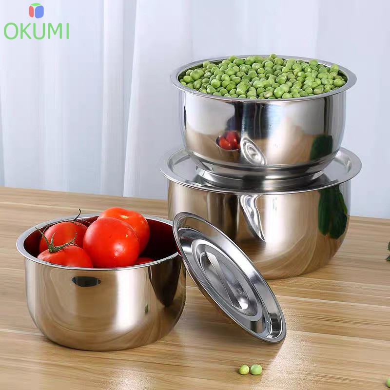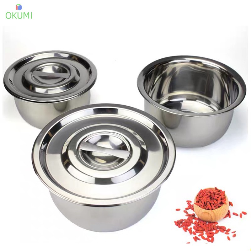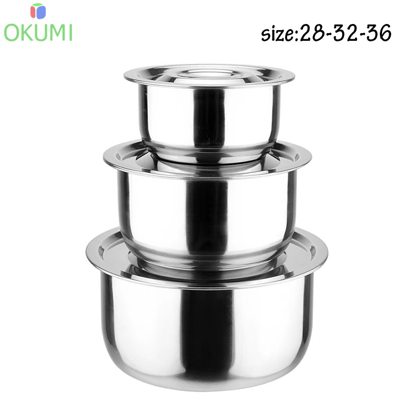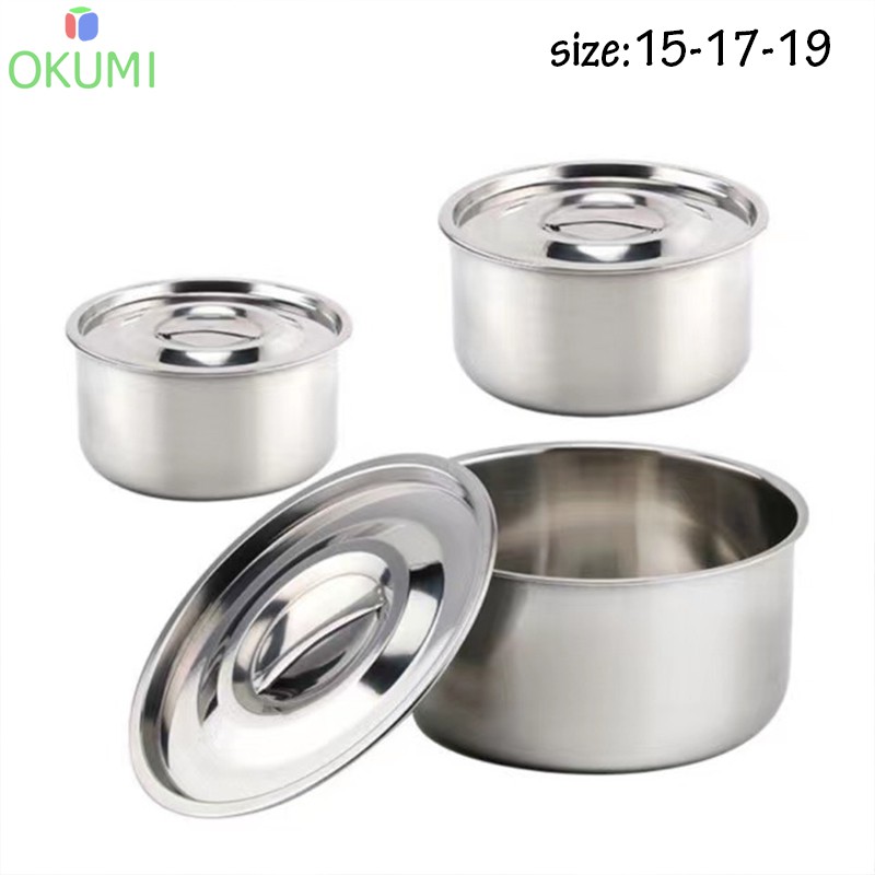 OKUMI_SHOP หม้อแขกสแตนเลสอย่างดี 1ชุดมี3ใบ ขนาด15,17,19 cm. พร้อมฝาปิด