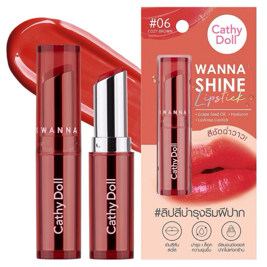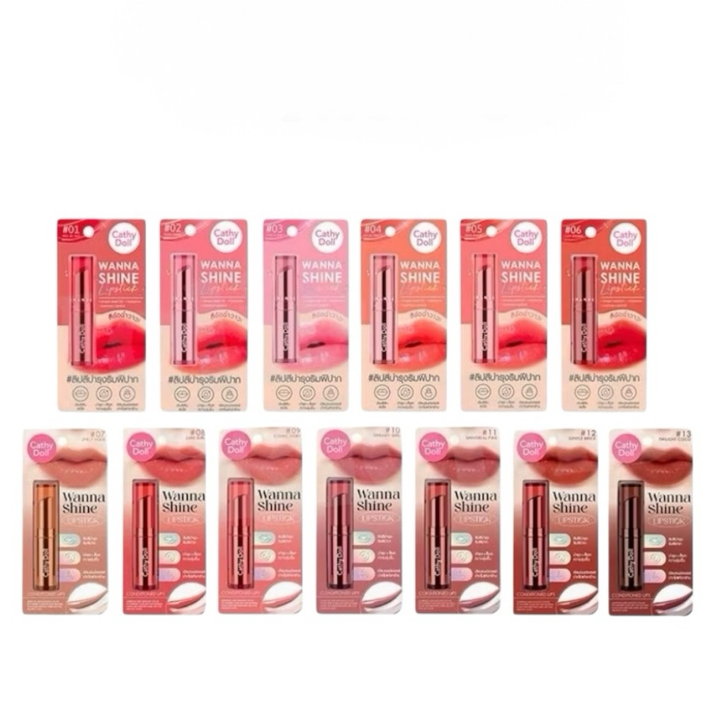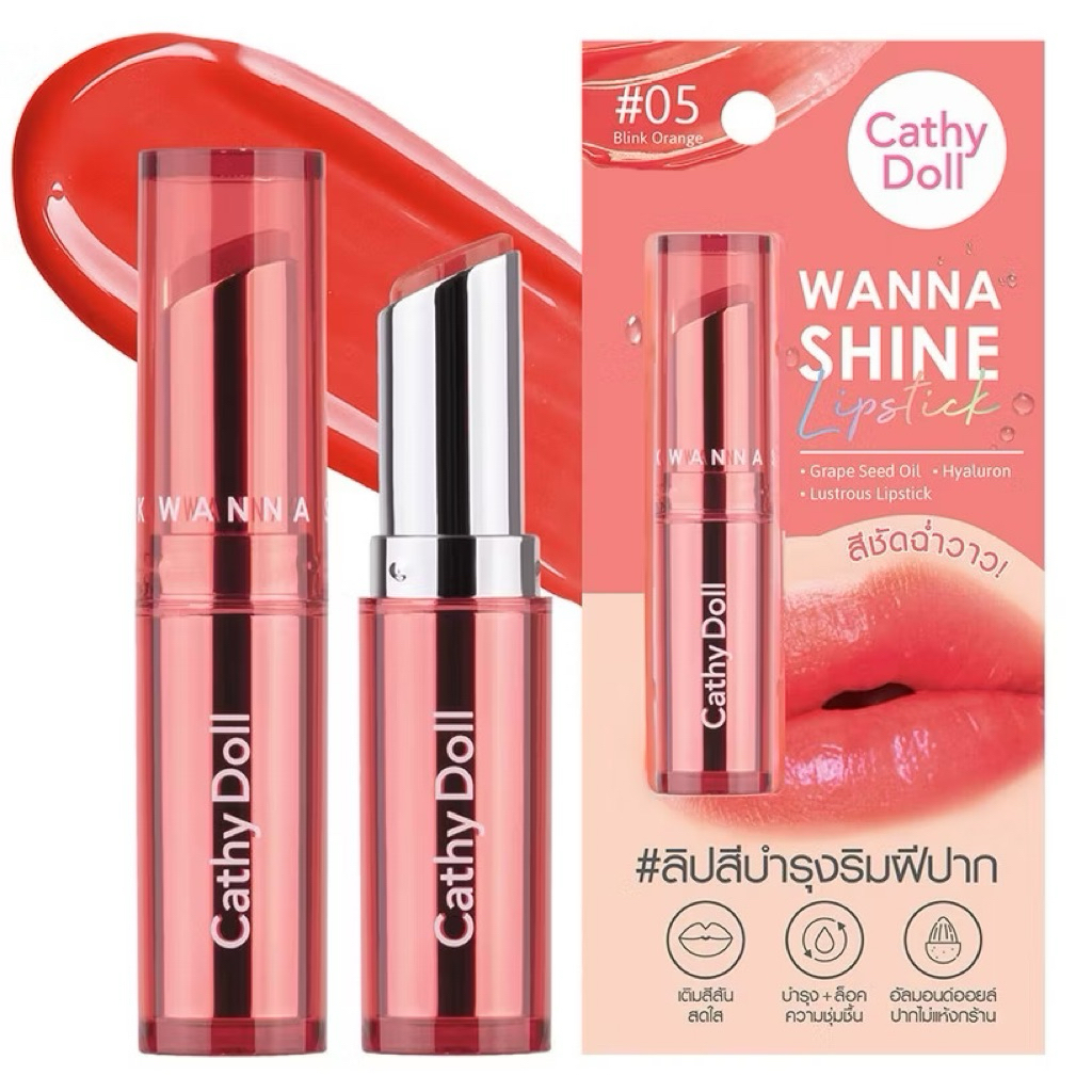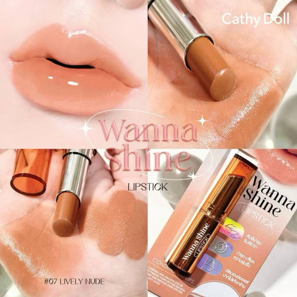 เคที่ดอลล์ วันนาไชน์ ลิปสติก ลิปสีบำรุงริมฝีปาก ลิปสติกเนื้อวาว CATHY DOLL Wanna Shine Lipstick 3g.