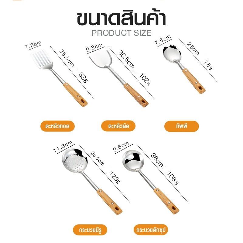 YTL ตะหลิว ทัพพี กระบวย กระชอน วัสดุสแตนเลสหนา ด้ามจับถนัดมือ อุปกรณ์ทำอาหาร