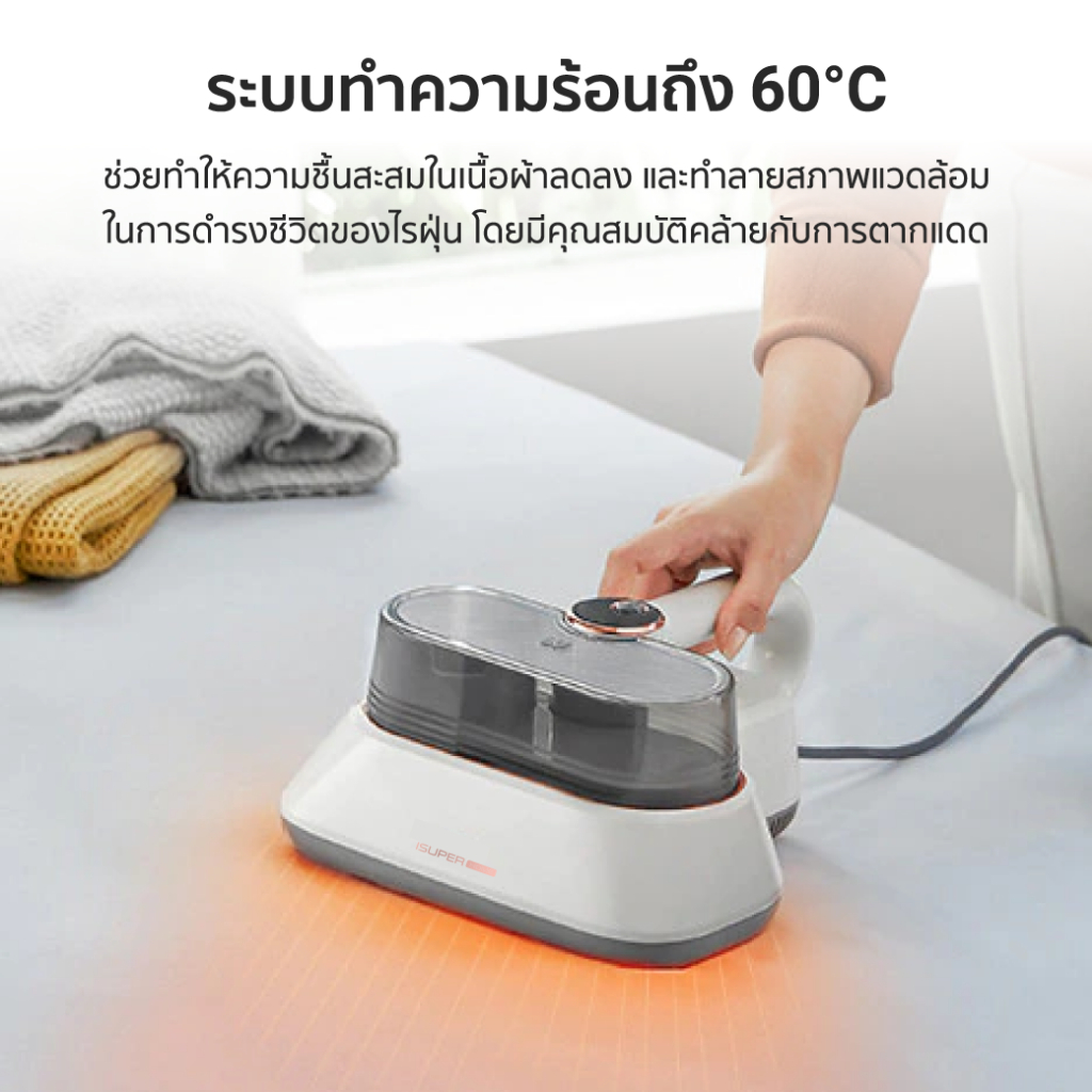 [ประกันศูนย์ไทย 1 ปี] iSUPER Anti-Mites Vacuum Cleaner M1 เครื่องดูดไรฝุ่น แรงดูด 12,000Pa ตบฝุ่นได้ น้ำหนักเบา