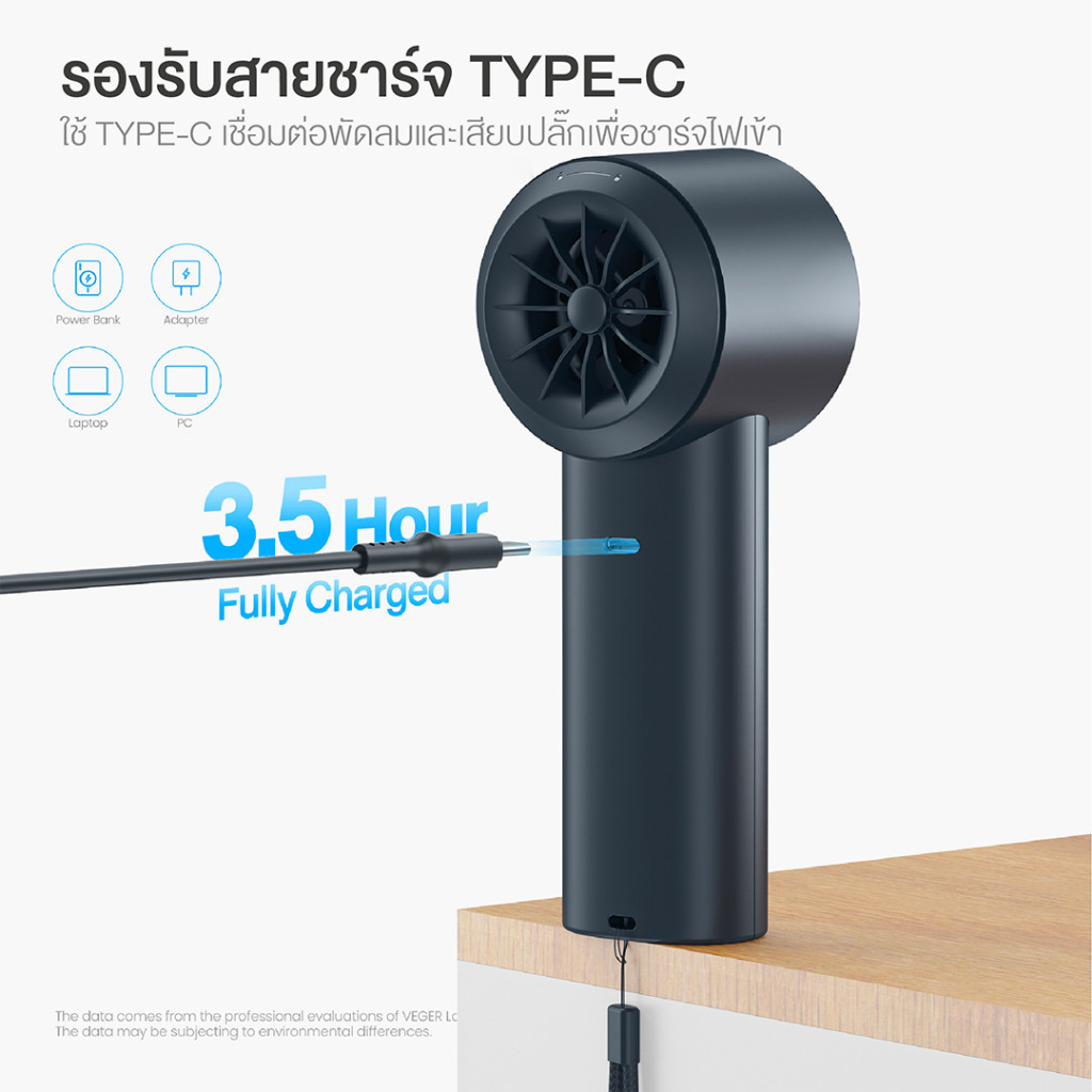 VEGER VLF-01 พัดลมพกพา 3600mAh พัดลมมือถือ พัดลม น้ำหนักเบา พกพาง่าย ปรับระดับความแรงได้ 100 ระดับ ประกันศูนย์ 1 ปี