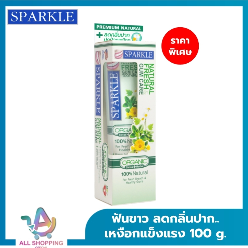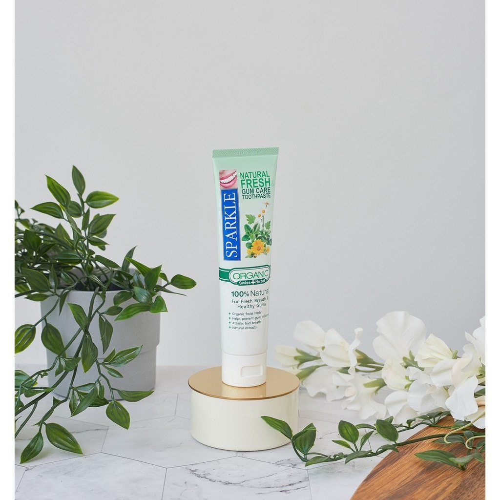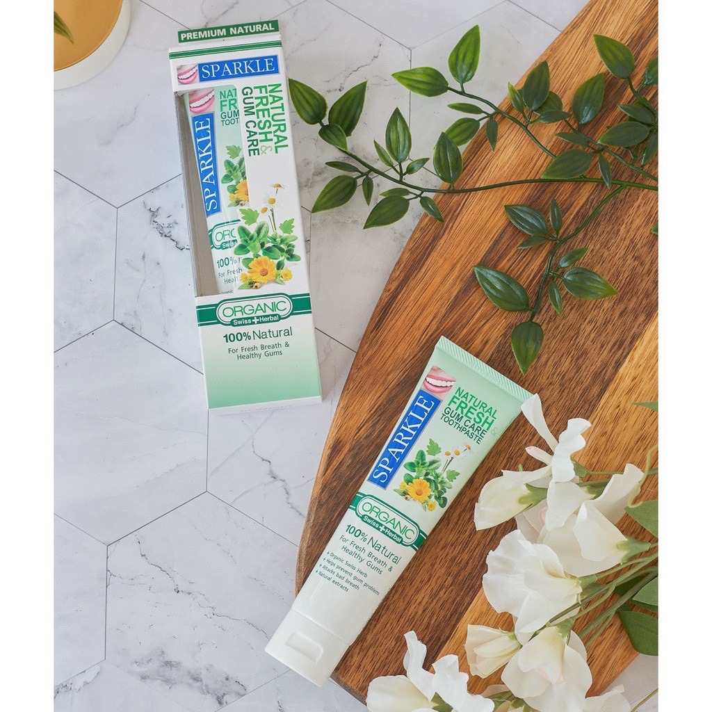 (โค้ดลด40% ในVDO!!) Exp.12/2028 SPARKLE ยาสีฟัน ออร์แกนิค ลดกลิ่นปาก 100 g สูตร Natural Fresh & Gum Care SK0290