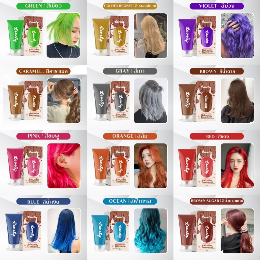 🔥ครีมเปลี่ยนสีผมแบบหลอดพร้อมกล่อง สีย้อมผมสวย ไม่ทำร้ายผม🔥แถมถุงมือทุกออเดอร์! ทรีทเม้น LOVELY 🥰
