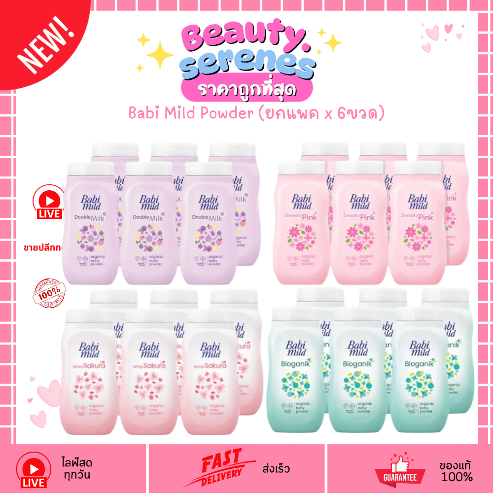 (ยกแพ็คx6) แป้งเบบี้มายด์ Babi Mild Powder 45g ขนาดพกพา