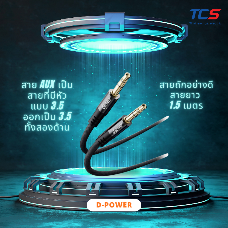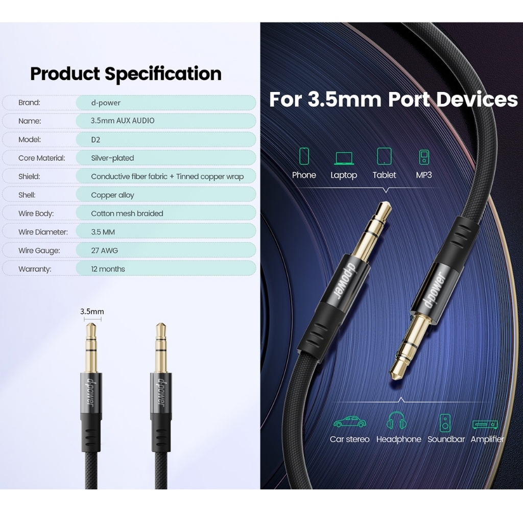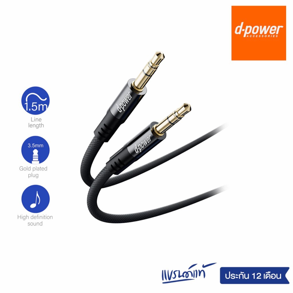 d-power HiFi AUX สายเคเบิ้ลแจ็ค 3.5 มม. 3.5 มม. ชุบเงิน สําหรับกีตาร์ หูฟังรถยนต์ รุ่น D2 ยาว 1.5 M