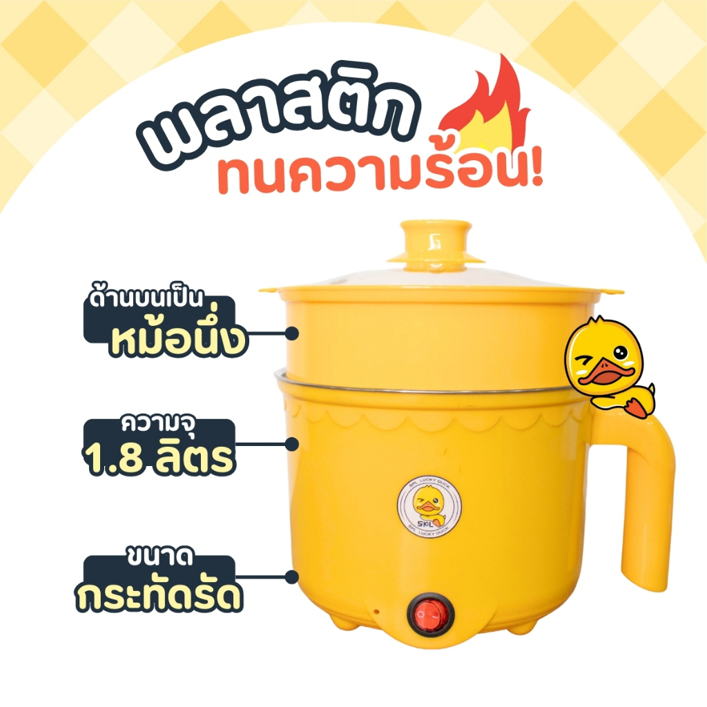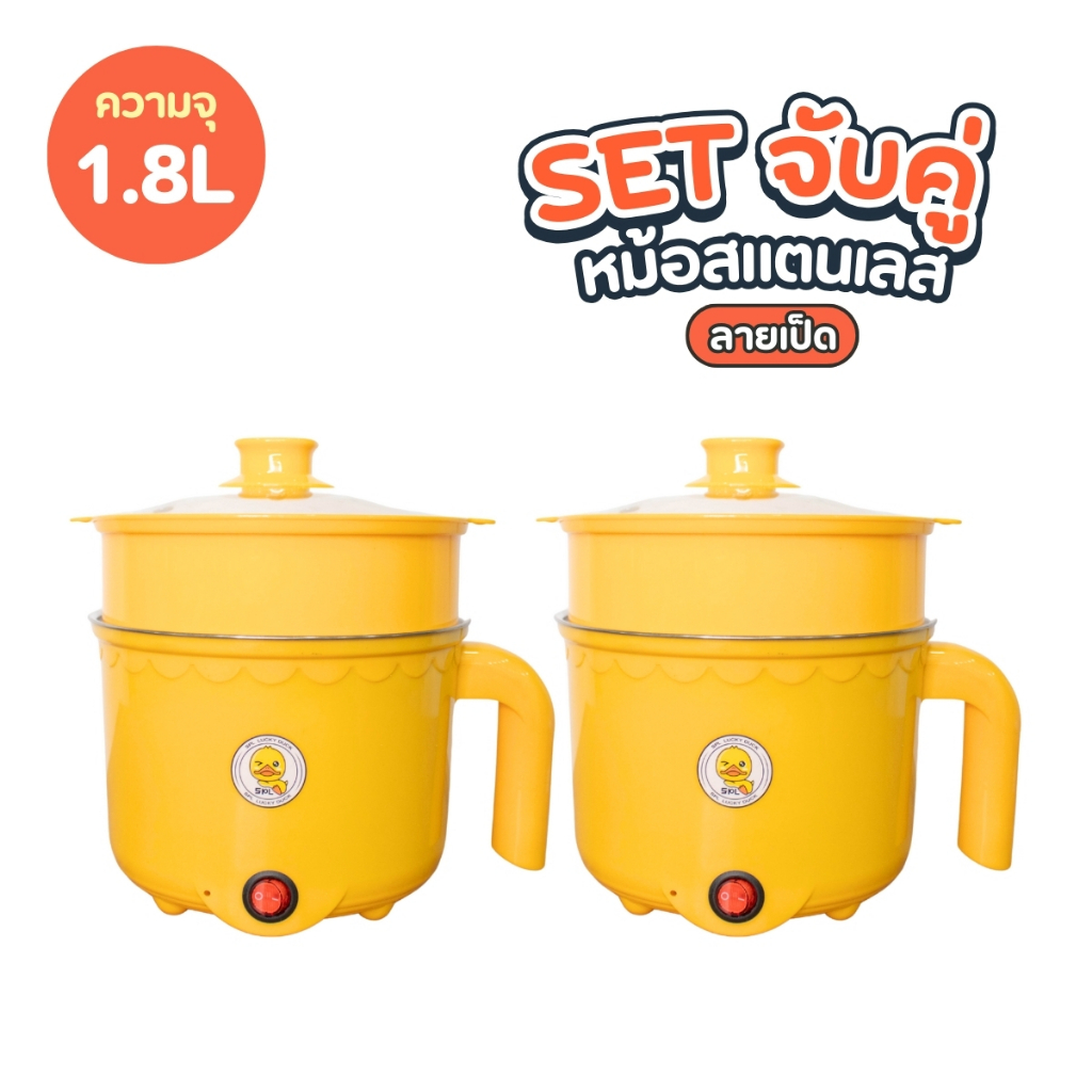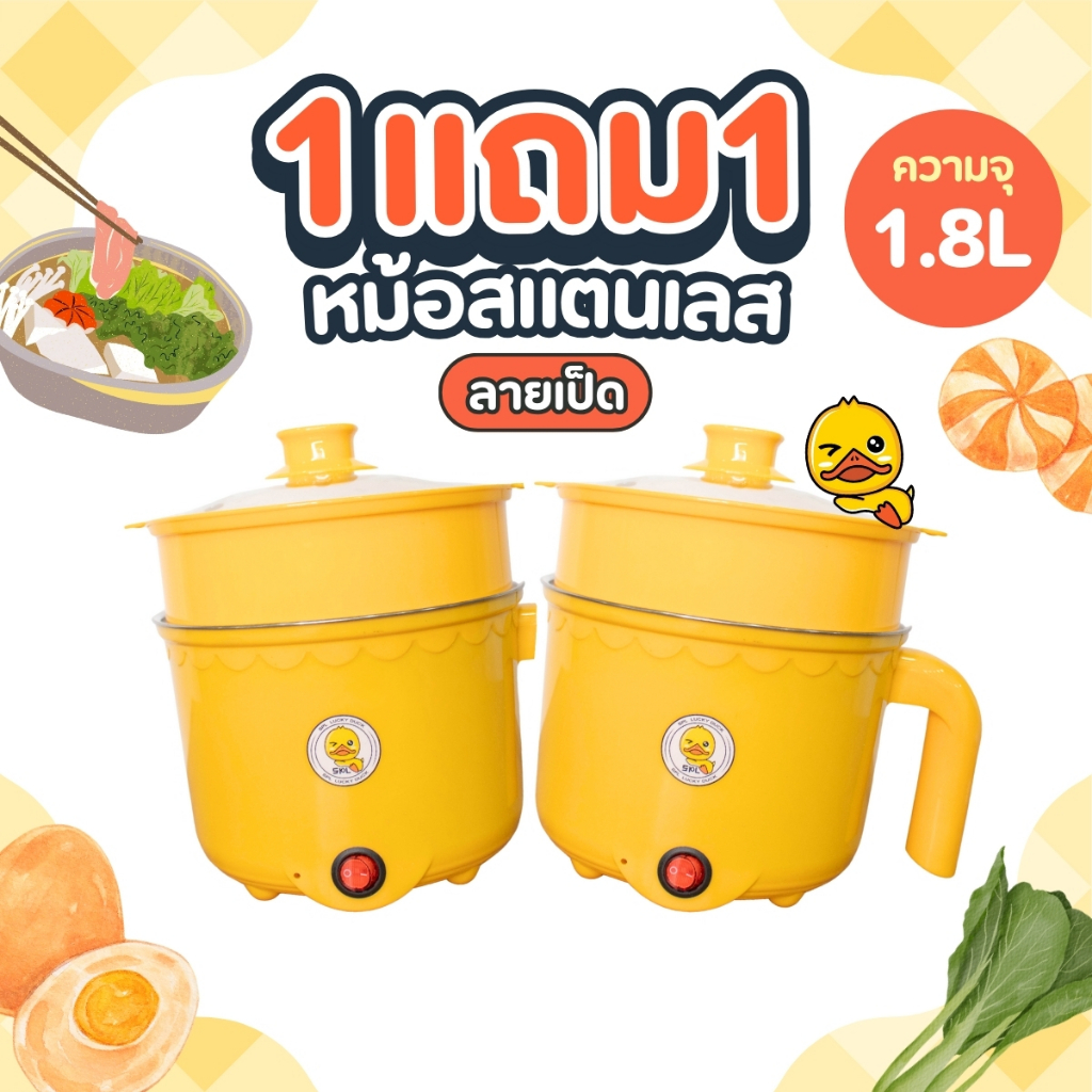 1แถม1 หม้อสแตนเลสไฟฟ้า ลายเป็ด ได้2ชิ้น หม้อสุกี้ ต้มมาม่า ร้อนไว ขนาด1.8ลิตร ใช้งานง่าย ทำความสะอาดง่าย ต้ม ผัด ทอด ได้