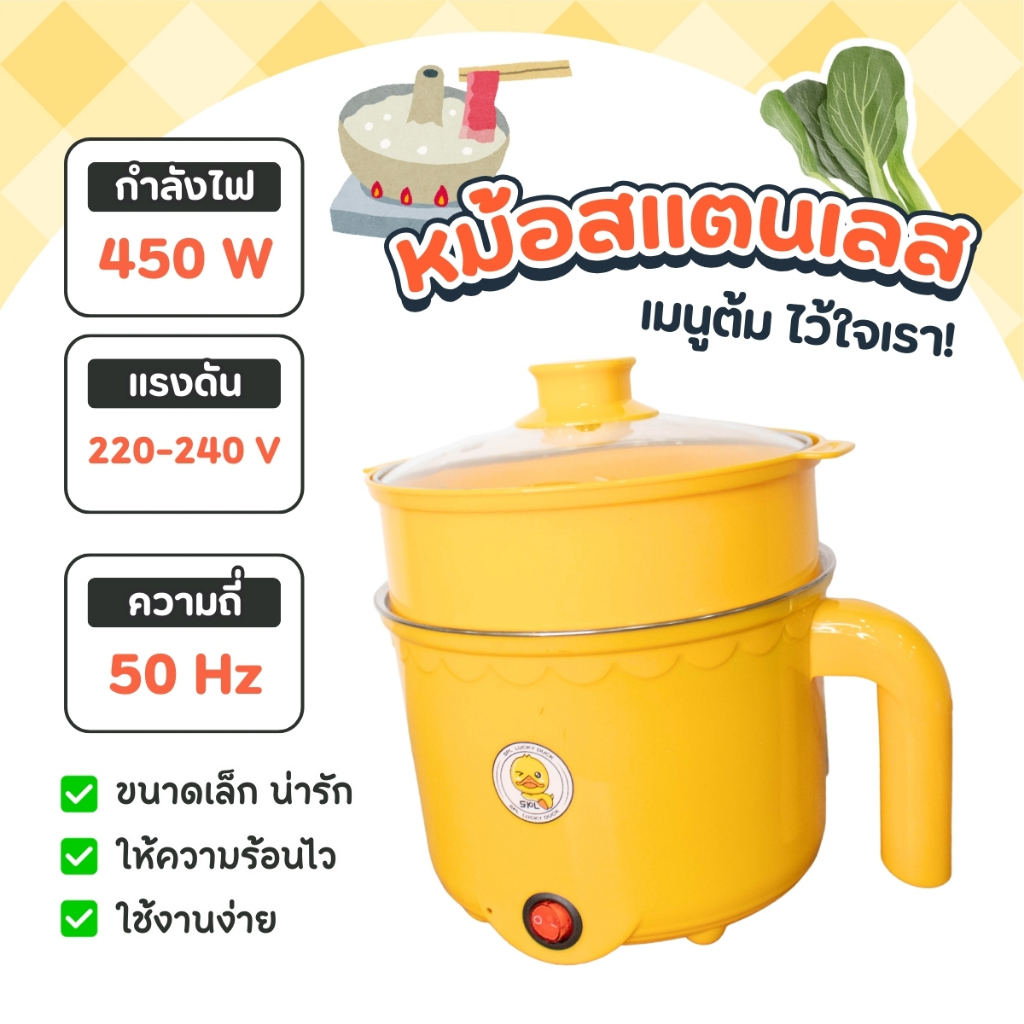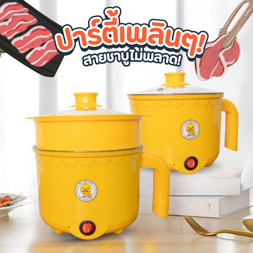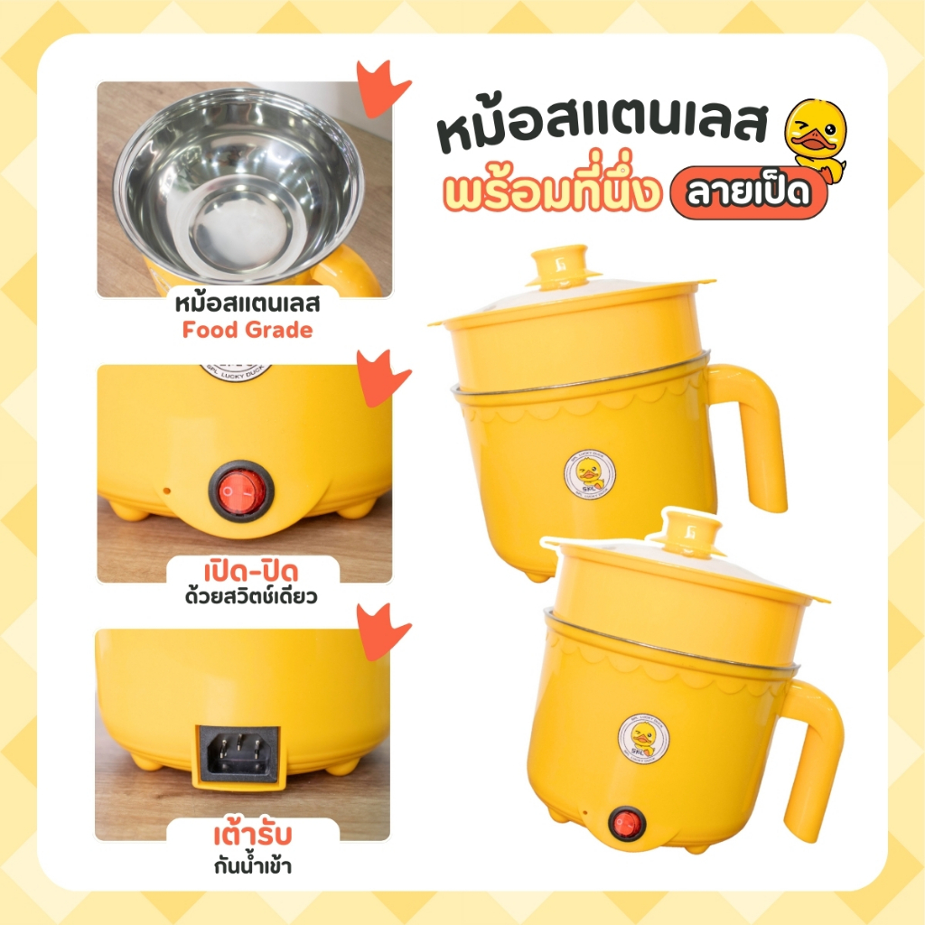 1แถม1 หม้อสแตนเลสไฟฟ้า ลายเป็ด ได้2ชิ้น หม้อสุกี้ ต้มมาม่า ร้อนไว ขนาด1.8ลิตร ใช้งานง่าย ทำความสะอาดง่าย ต้ม ผัด ทอด ได้