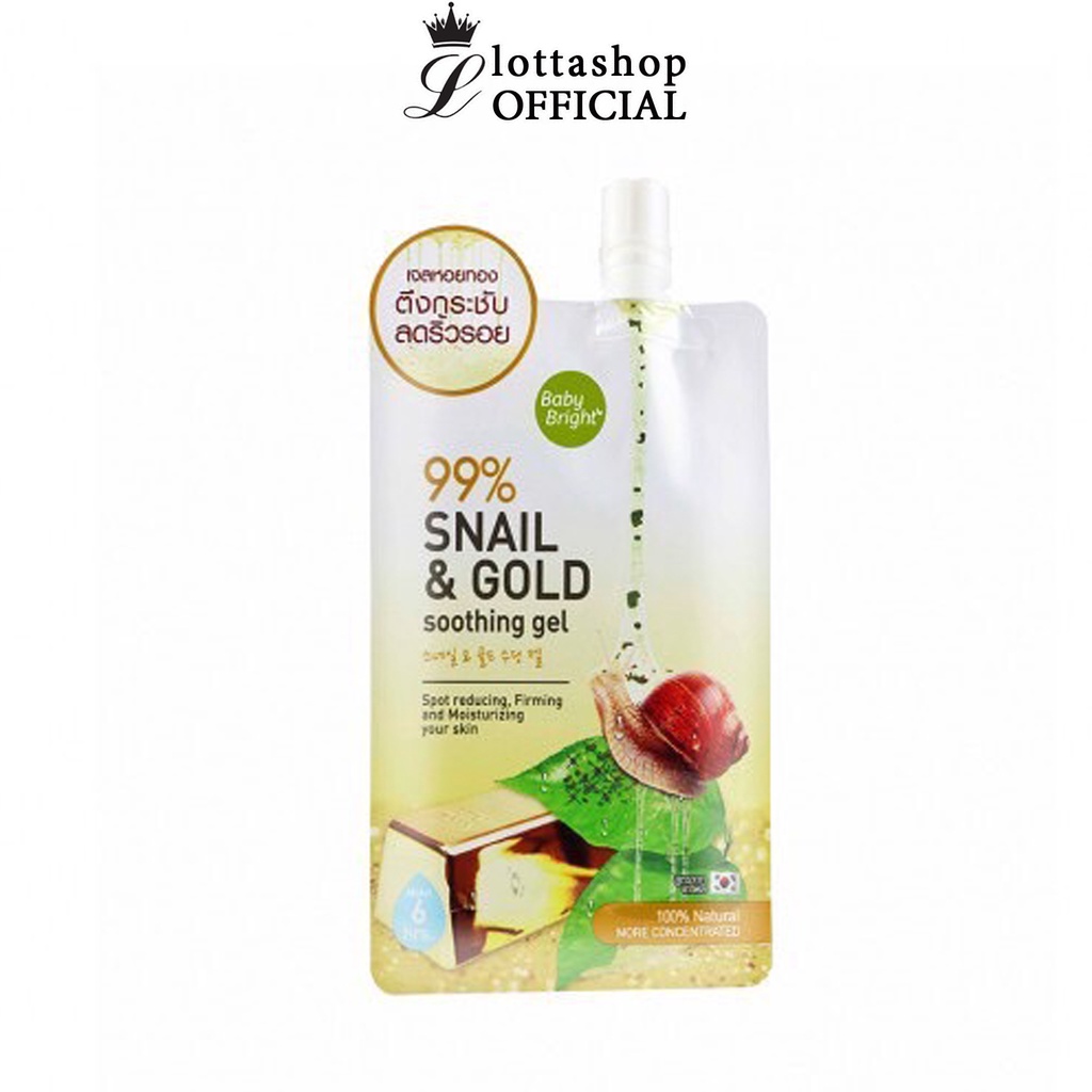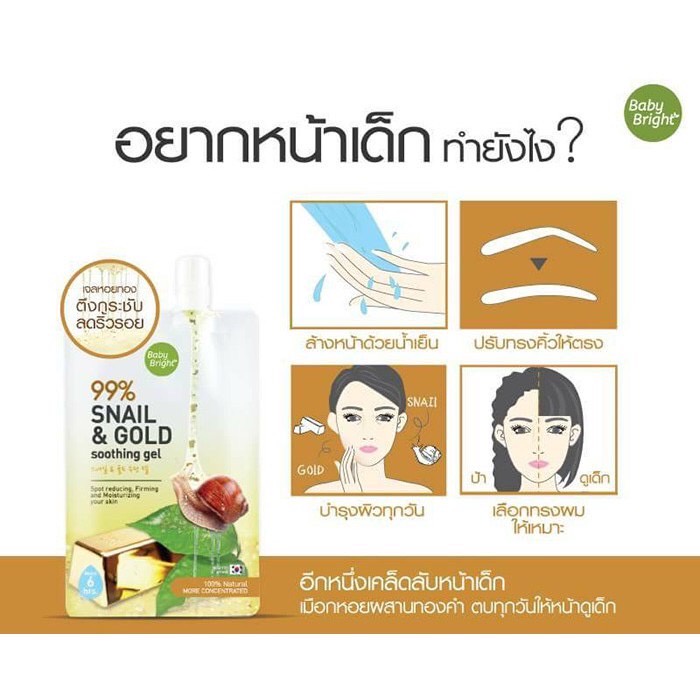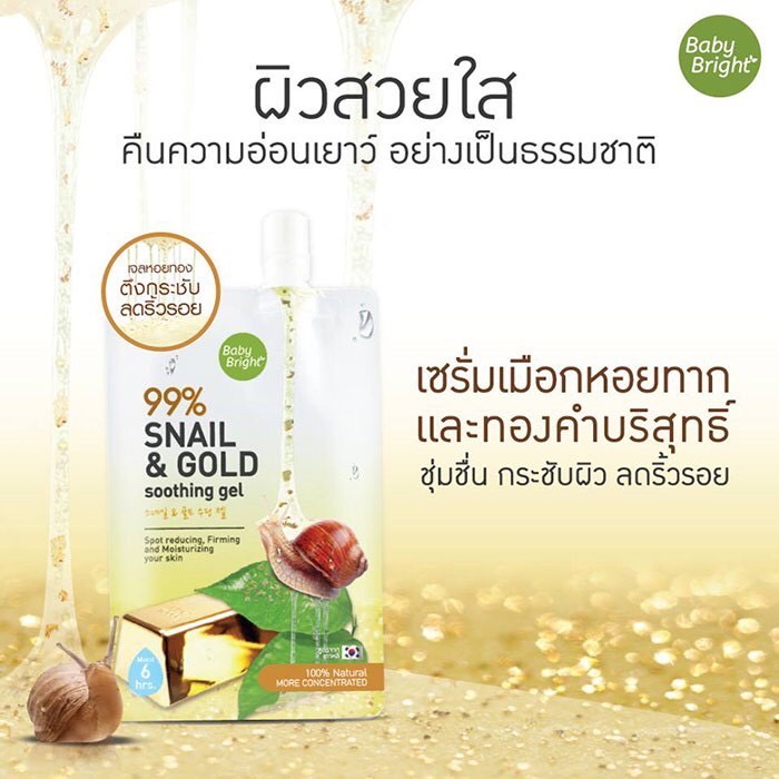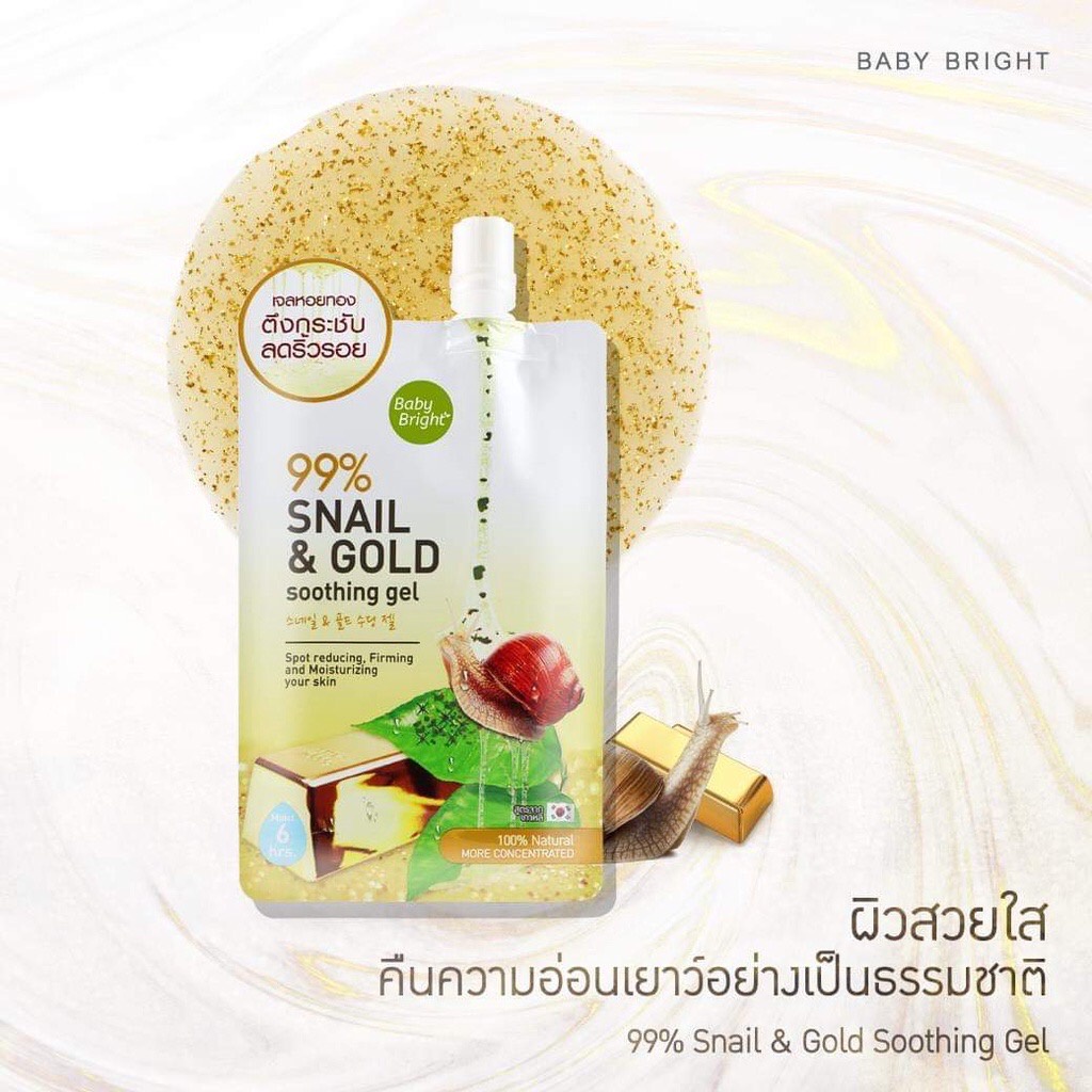 (กล่องX3ซอง) BABY BRIGHT SNAIL & GOLD SOOTHING GEL 50G สเนล+ทองคำ ชุ่มชื่น กระชับผิว ลดริ้วรอย