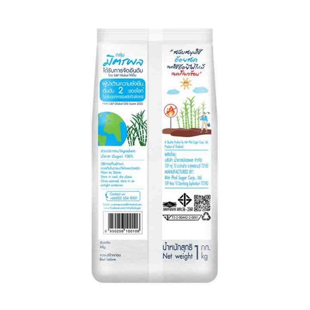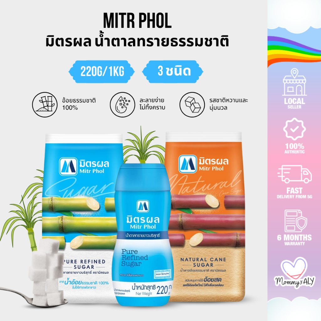 Mitr Phol มิตรผล น้ำตาลอ้อยธรรมชาติ น้ำตาลทรายขาวบริสุทธิ์ ชนิดขวด 220 กรัม / 1 กิโลกรัม หวานอร่อยจากอ้อยแท้ 100%