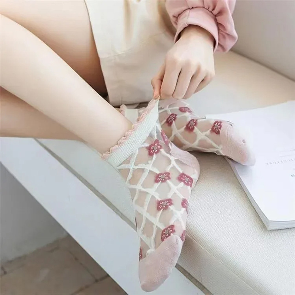 5 คู่ถุงเท้า,สีขาวต่ําตัดถุงเท้าเรือ,ลูกไม้ผู้หญิง,ผ้าฝ้ายโปร่งใส,ที่มองไม่เห็นสั้นไม่แสดง,ข้อเท้าเท้าฤดูร้อน